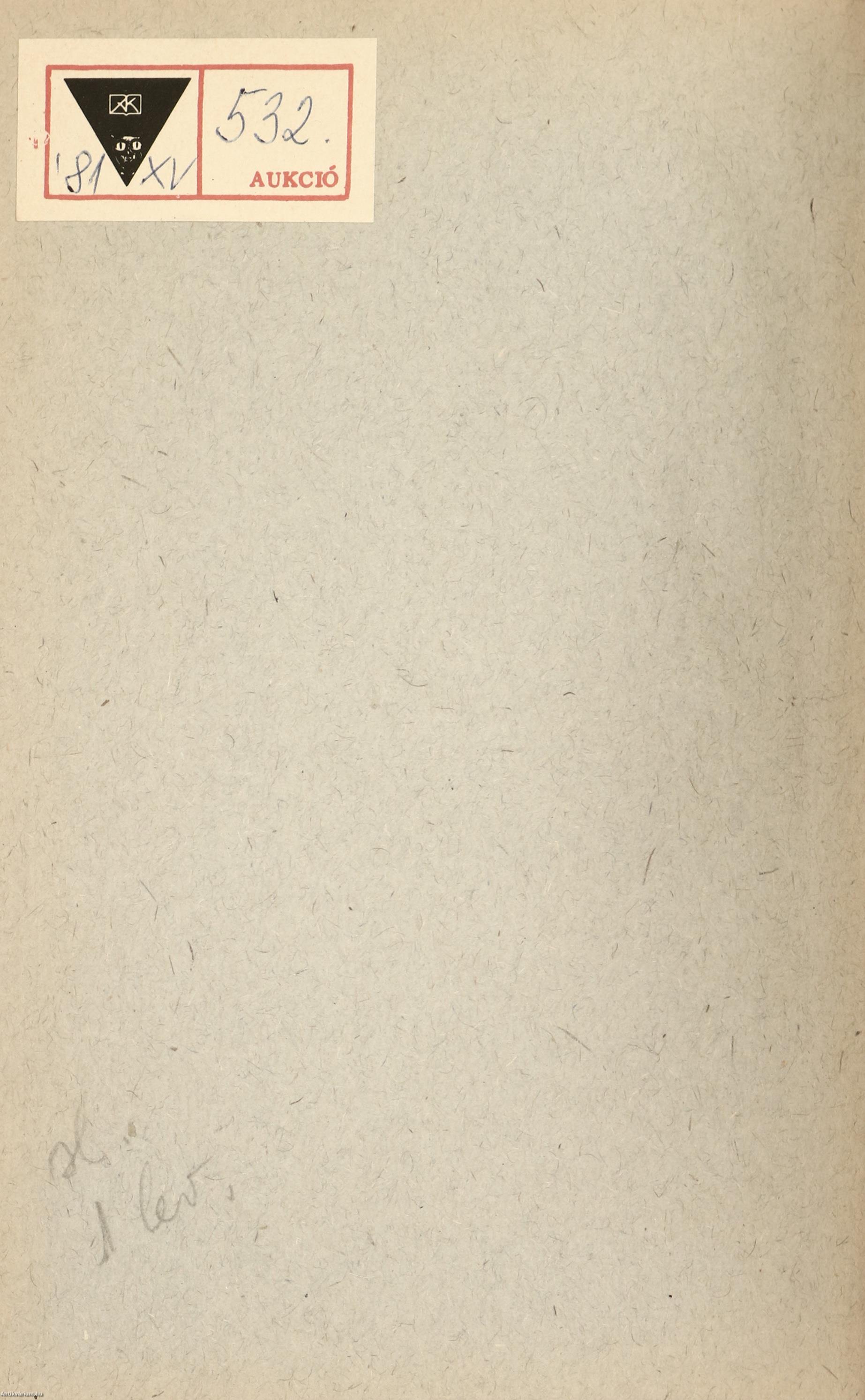 A kötet tartalomjegyzéke nem teljes, az utolsó lap hiányzik. A könyv szerepelt az ÁKV 1981. évi XV. aukciójának 532. tételeként.