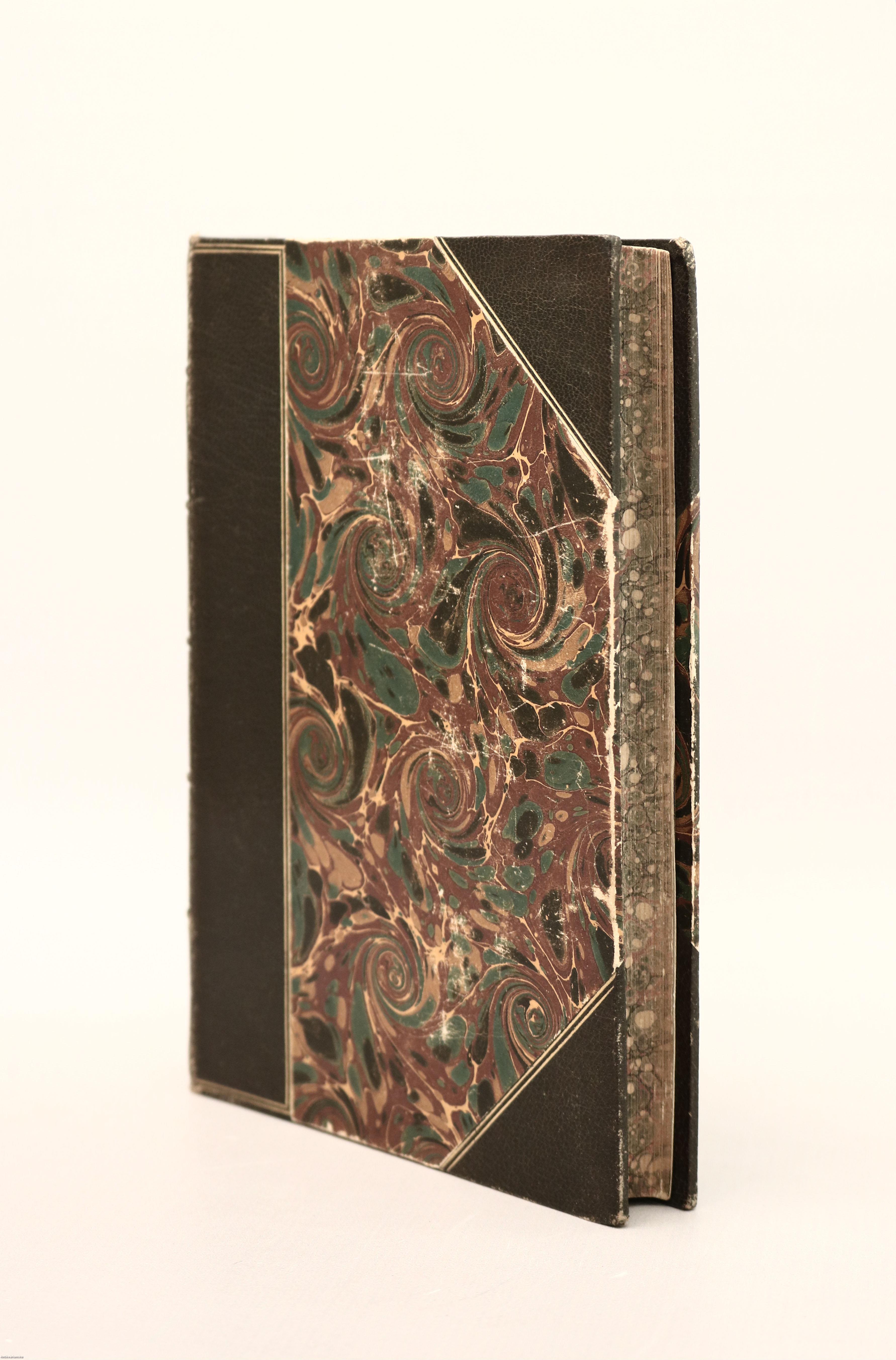 Korabeli félbőr kötésben lévő példány feliratozatlan, aranyozással díszített, színes, mintás címfedéllel és hátlappal, aranyozott feliratos, bordázott könyvgerinccel, színes, márványozott előzéklapokkal, mintázott lapélekkel, tiszta belívekkel, hiánytalan, jó állapotban.