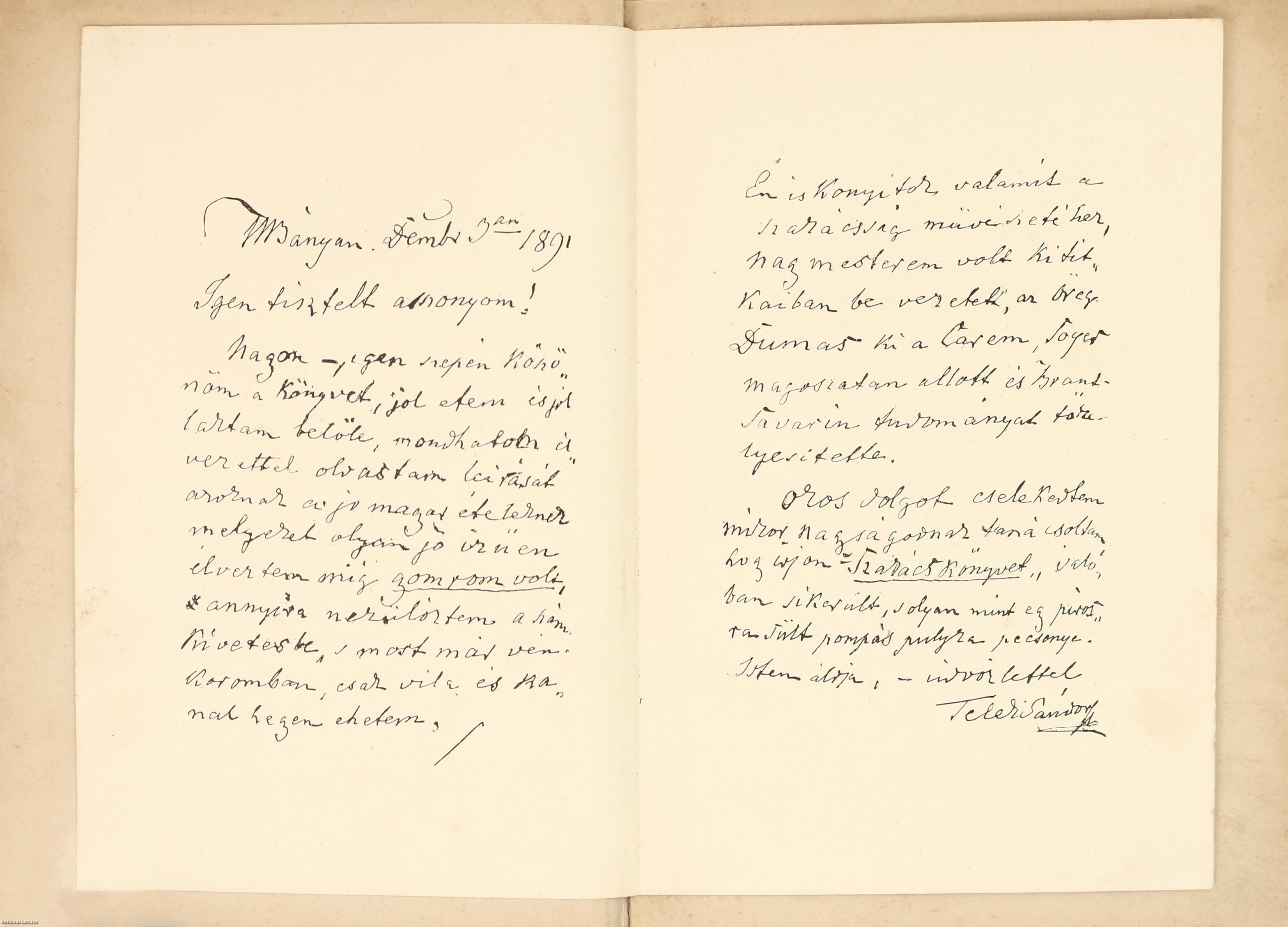Mellékletül gróf Teleki Sándor 1848-49-iki honvédezredes ajánló levele, facsimilében.