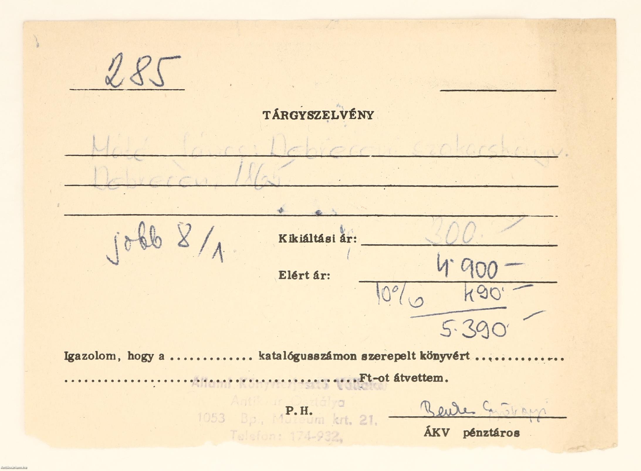 Az Antikvárium.hu Kft. aukciós felületének részletes szabályai és technikai leírása itt.