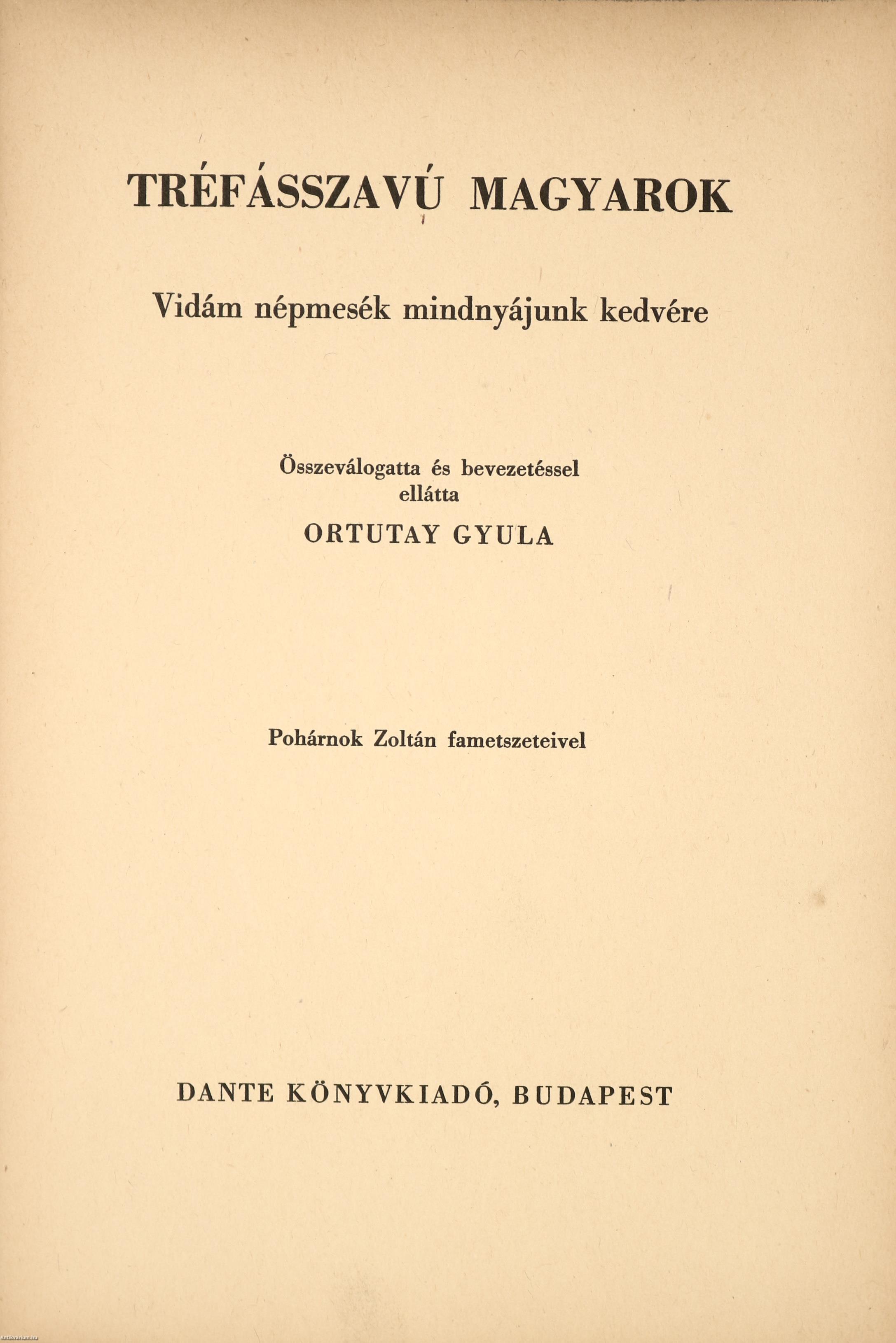Első kiadás. Tréfásszavú magyarok. Vidám népmesék mindnyájunk kedvére. Összeválogatta és bevezetéssel ellátta: Ortutay Gyula.
