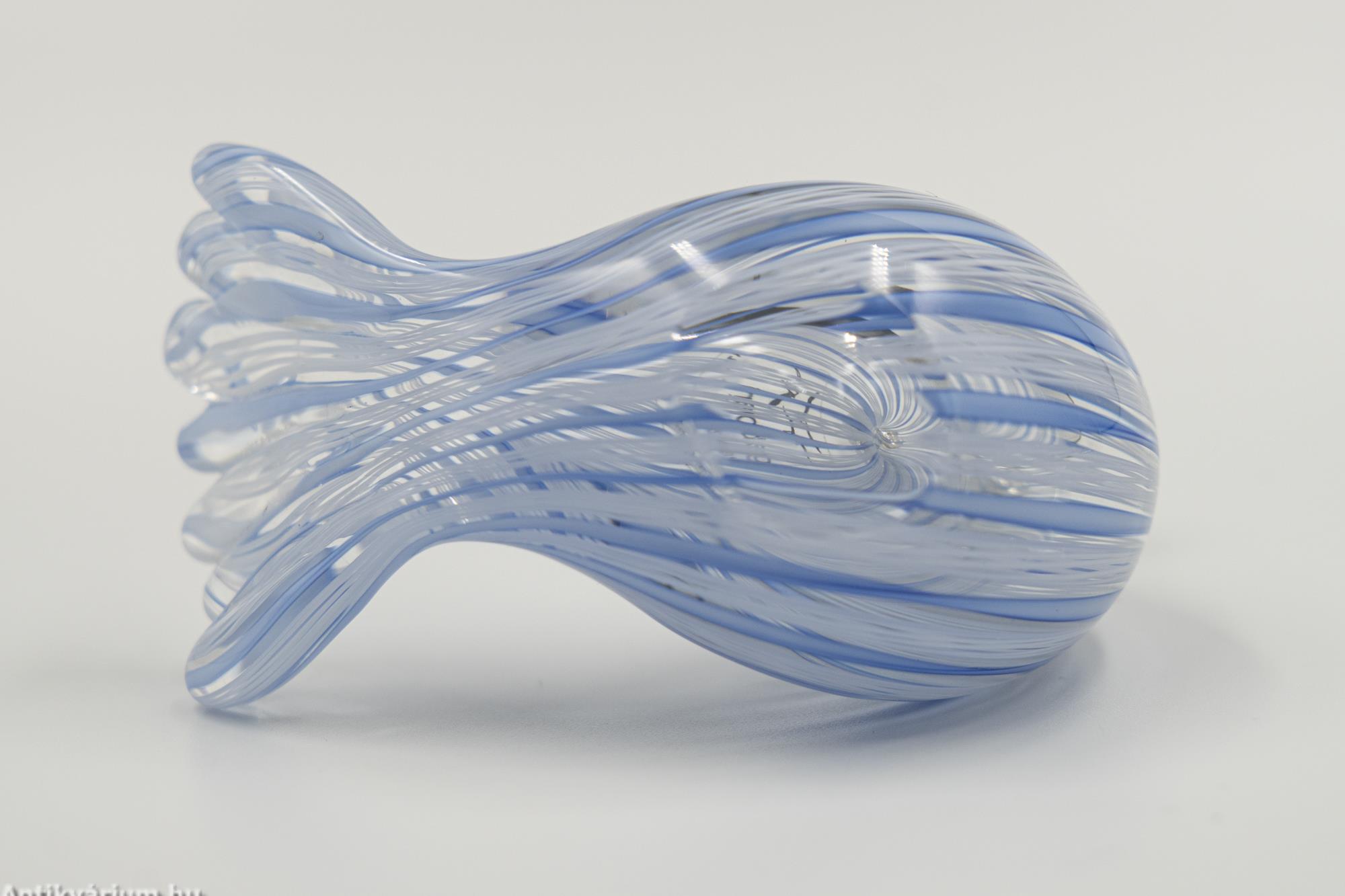 Muranoi jelzett kék - fehér mezza filigrana üvegdísz állat figura 20. század közepe 8 cm