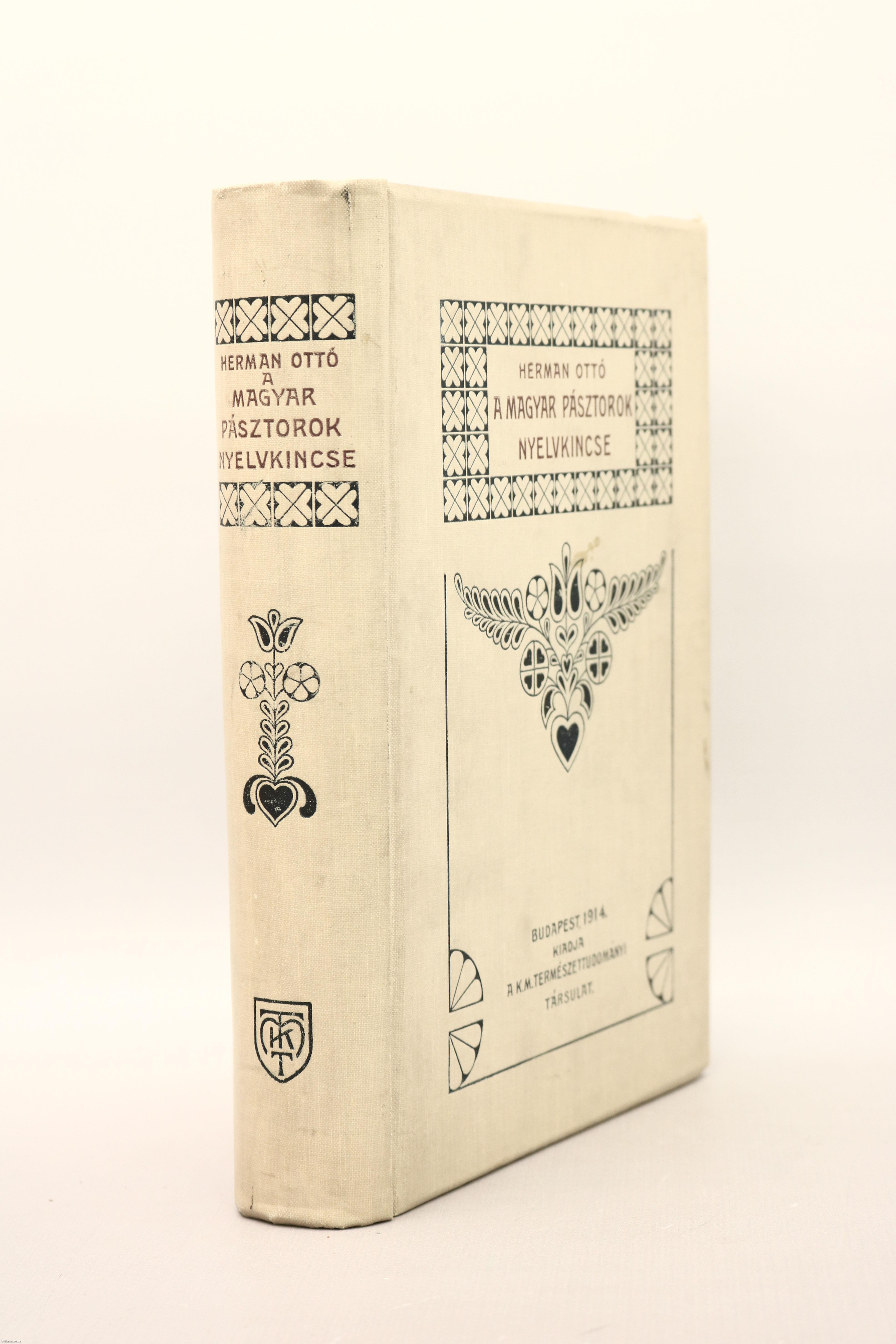 Első kiadás. Természettudományi Könyvkiadó-Vállalat a M. Tud. Akadémia segítségével kiadja a K. M. Természettudományi Társulat. No.: LXXXIX. sz. A XV. (1914-1916. évi) cziklus első kötete a Könyvkiadó-Vállalat aláírói számára. A magyarok nagy ősfoglalkozása. A magyar pásztorok nyelvkincse. A Kir. Magyar Természettudományi Társulat megbízásából szerzette: Herman Ottó. Három fekete-fehér, hártyapapírral védett képtáblával és három fekete-fehér szövegrajzzal illusztrált, valamint Dr. Ilosvay Lajos előszavával, elöljáró szóval, függelékkel, helyreigazításokkal, szómutatóval és részletes tartalomjegyzékkel kiegészített kötet. A könyv szerepelt az ÁKV 1977. évi, XI. aukciójának 256. tételeként (címke a hátlap felőli előzéklapon). A könyvet Hornyánszky Viktor Császári és Királyi Udv. Könyvnyomdája nyomtatta és a Gottermayer Műintézet kötötte Budapesten. Kiadói egészvászon Gottermayer kötésben lévő példány két színnel feliratozott, illusztrációval ellátott címfedéllel és könyvgerinccel, a kiadó emblémájával ellátott hátlappal, címfedél felől megerősített előzéklappal, hiánytalan állapotban. A kötet szerzője Herman Ottó (Breznóbánya, 1835. június 26. – Budapest, 1914. december 27.) természetkutató, zoológus (ornitológus, ichthiológus, arachnológus), néprajzkutató, régész, politikus. Sokoldalú tudományos tevékenysége nyomán az utolsó magyar polihisztornak és a madarak atyjának is nevezték. Kutatói gyűjtőmunkái közben folyamatosan képezte magát, 14 könyv és mintegy 1140 tudományos publikáció fűződik a nevéhez. A magyar őskőkorszak-kutatás és a hazai tudományos barlangkutatás egyik elindítója volt. Termékeny természetrajzi írói munkássága mellett, mint tudományszervező is jeleskedett. A Természettudományi Füzetek és az Aquila c. madártani folyóirat szerkesztője, a Magyar Ornitológiai Központ alapító-igazgatója, a Magyar Néprajzi Társaság alapító tagja és elnöke, a tudományos ismeretterjesztés műfajának egyik magyarországi megteremtője.