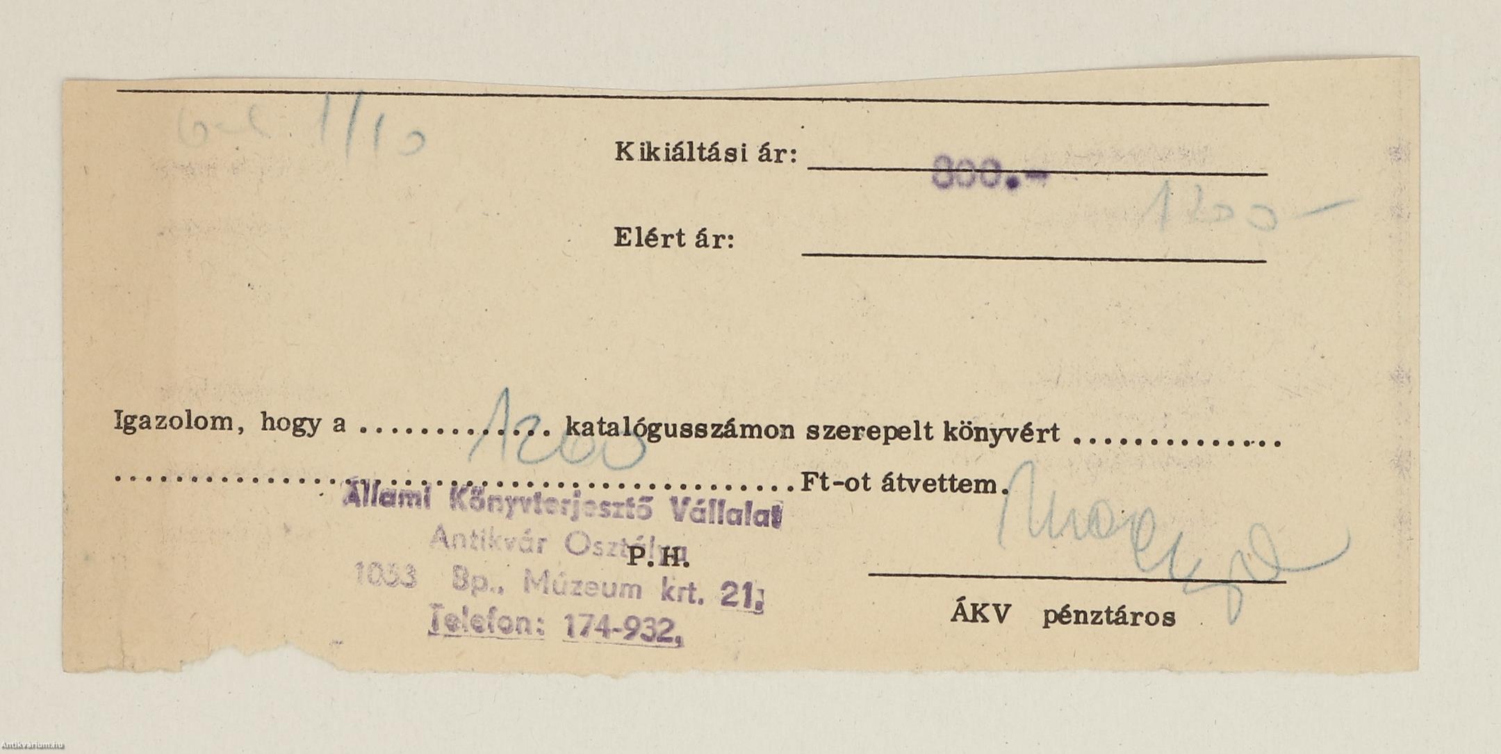 Az Antikvárium.hu Kft. aukciós felületének részletes szabályai és technikai leírása itt.