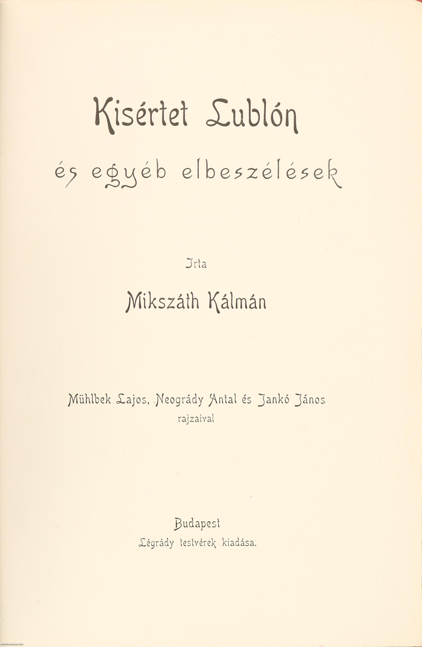 Első kiadás. Kisértet Lublón és egyéb elbeszélések. Írta: Mikszáth Kálmán.