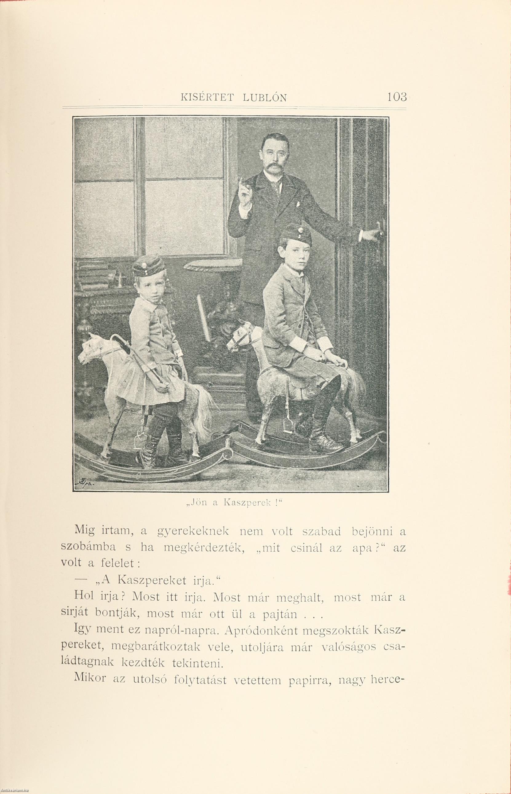 „(Mikszáth Kálmántól) ismét egy pompás illusztrált kiállítású kötet jelent meg a Légrády Testvérek kiadásában. A kötet „Kísértet Lublón és egyébelbeszélések“ cim alatt Mikszáthnak következő hét elbeszélését tartalmazza: Kisértet Lublón. A németke. A paraszt kontesz. A diplomata. Nagy kutya a vicebiró. A zöld légy és a sárga mókus. A piros harangok. A kötetben az első elbeszélés a legterjedelmesebb (Gasparek históriája) s utána a szerzőnek két érdekes jegyzete következik. Az egyik a Gasparek regénytárgy keletkezését irja meg (itt be van mutatva Mikszáth maga is, két fiával jó fényképnyomásban), a másik pedig a mese érdekes történeti kiforrásaival foglalkozik. - A „németke“ a Berci fiú németül-tanulásának historiája s az ő fototipiájával is el van látva. A paraszt kontesz és a többi kis elbeszélés Mikszáthnak legújabb, kevésbé ismert elbeszélése. Igy együtt, illusztrálva, rendkívül érdekes gyűjteményt tesznek ki…” - írta a műről a Pesti Hírlap c. lap (1896. március 08./18. évfolyam/ 67. szám).