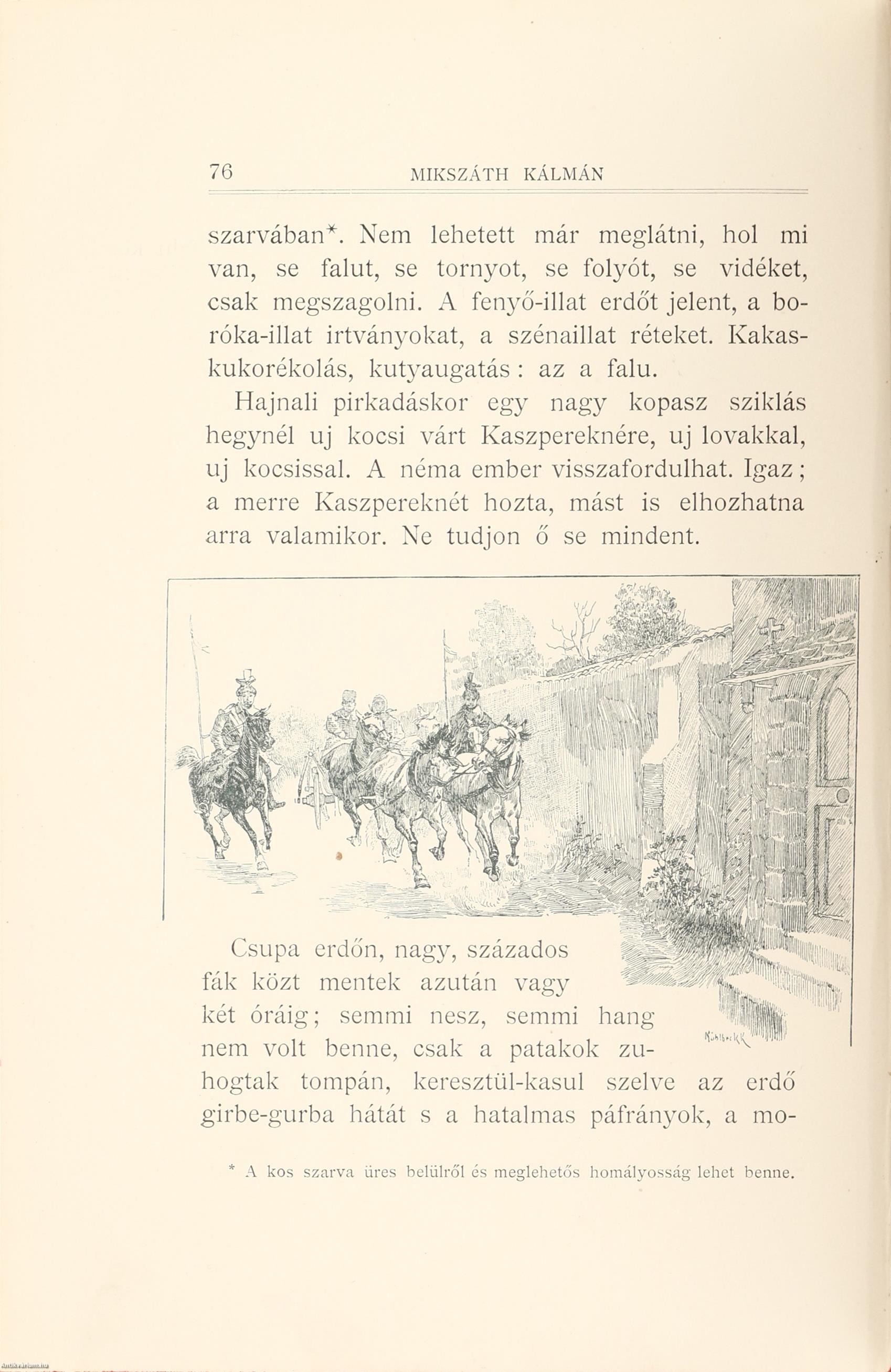 Szemeiket behunyják, de azért mégis látják a jöttét. A falak foszlanak, válnak, mint a köd s messze előcsillan Kaszperek, száguldó fehér paripán, veres ruhában.