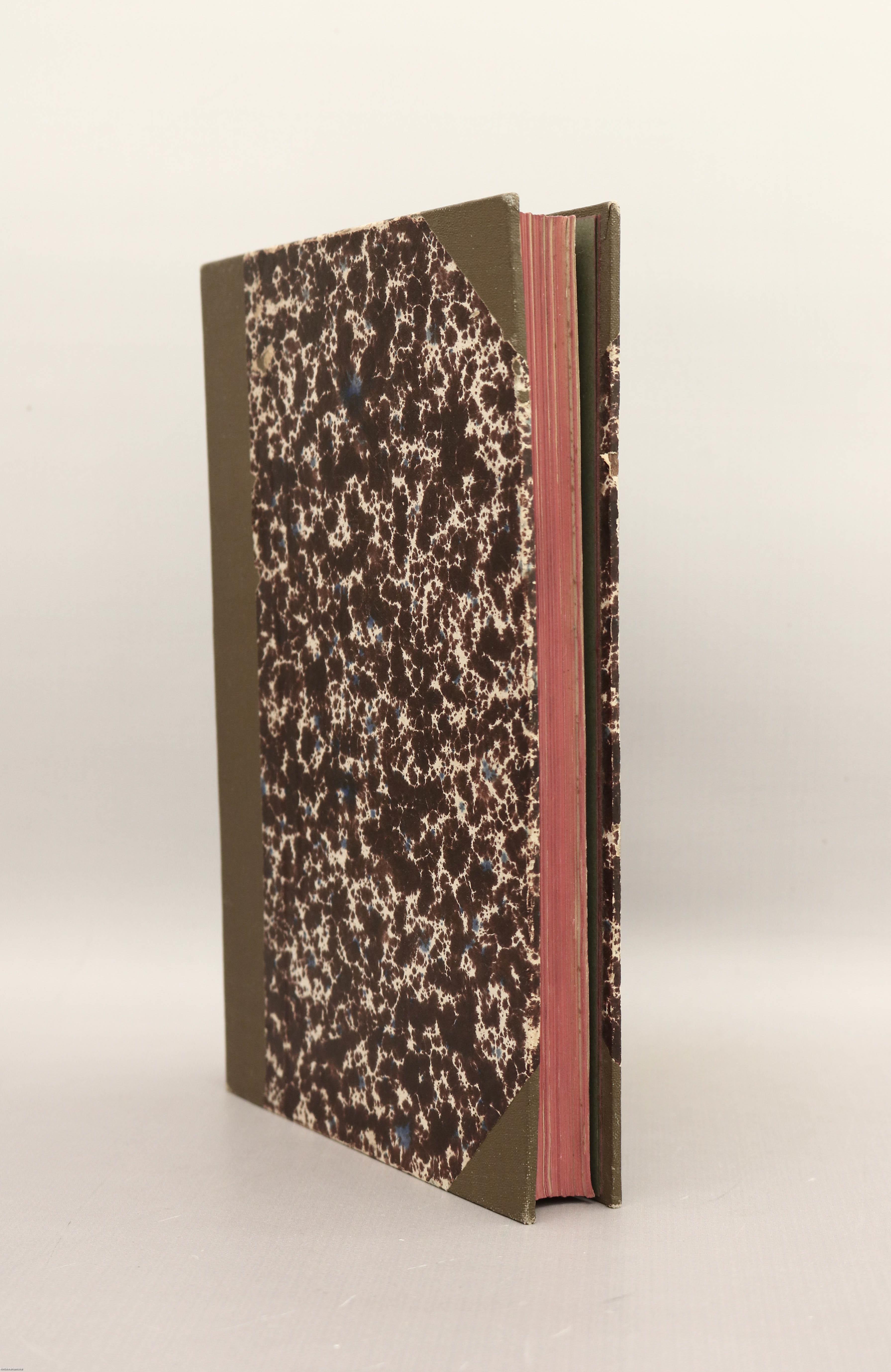 Könyvkötői félvászon kötésben lévő példány feliratozatlan, színes, mintás címfedéllel és hátlappal, feliratozatlan könyvgerinccel, új, színes előzéklapokkal, színezett lapélekkel, tiszta belívekkel, a hajtások mentén kis mértékben sérült, több helyen javított térképmelléklettel, hiánytalan állapotban.