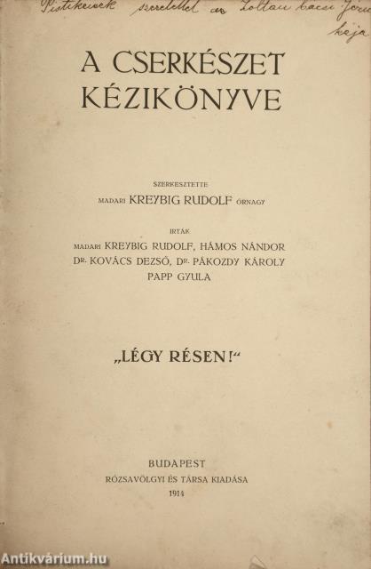 Első kiadás. A cserkészet kézikönyve. Szerkesztette: Madari Kreybig Rudolf. Írták: Madari Kreybig Rudolf, Hámos Nándor, Dr. Kovács Dezső, Dr. Pákozdy Károly, Papp Gyula.