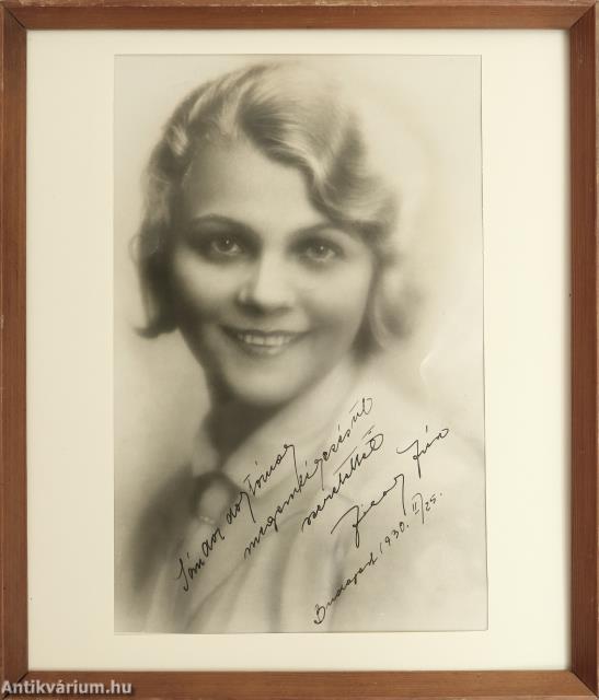 A fotót dedikálta: Zilahy Irén (Kaposvár, 1902. augusztus 10. – Budapest, 1944. április 3.) színésznő. Pályafutását Erdélyben, Aradon, Nagyváradon és Szatmárnémetiben kezdte. Az 1920-as évek második felétől Budapesten játszott a Városi Színházban és a Budai Színkörben. Az 1930-as években egyes szerepekre szerződve több budapesti színházban (pl.: Magyar Színház, Kamara Színház) is fellépett. 1931-ben a bécsi közönség előtt is szerencsét próbált, valamint kisebb szerepeket vállalt francia és német filmekben. 1937-ben megházasodott, és visszavonult a színpadtól.
