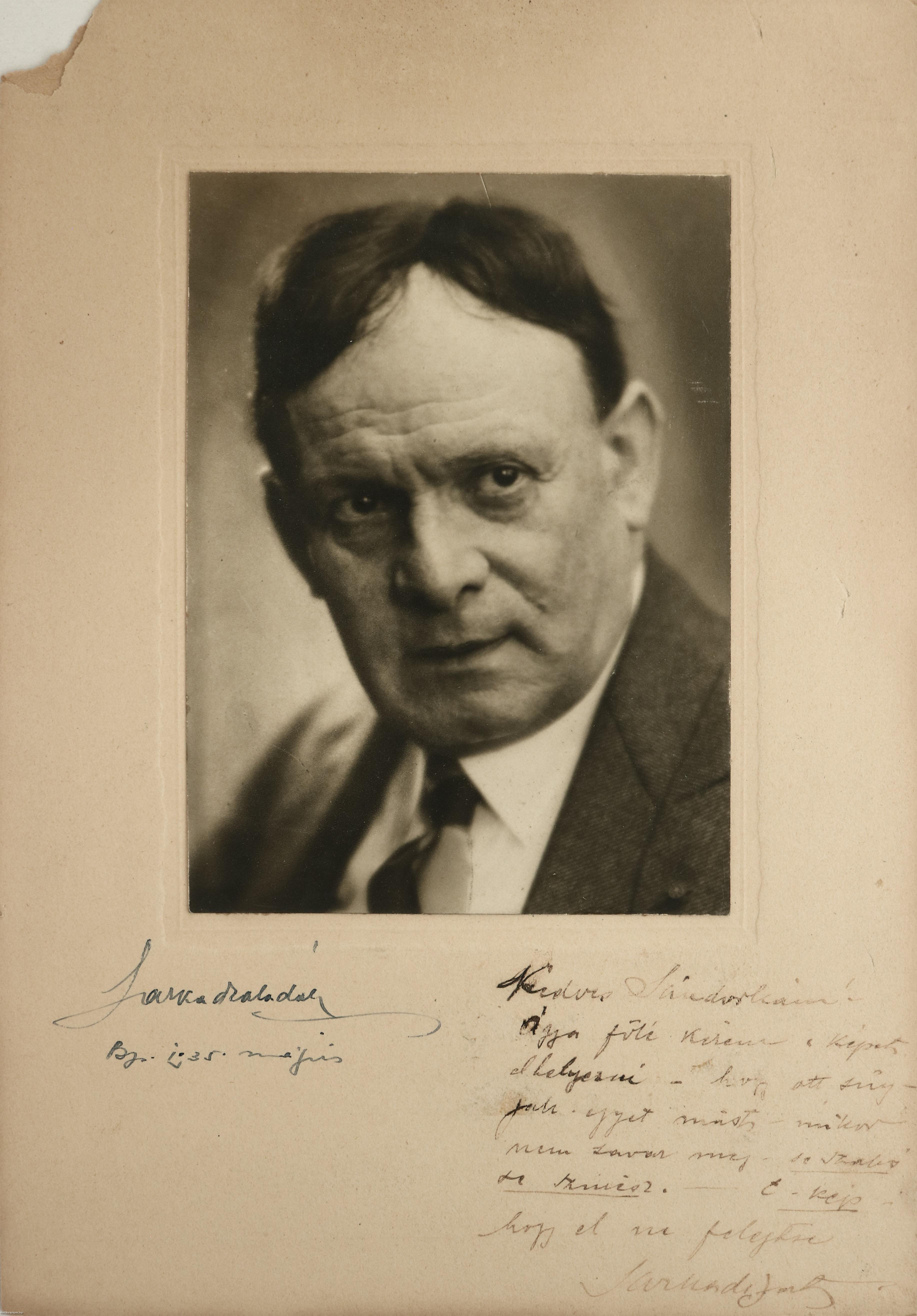 A dedikáció címzettje: dr. Sándor Zoltán ügyvéd, 1922-től a Budapesti Színészek Szövetségének titkára, 1926-os indulásától a Színészujság szerkesztője, a korszak budapesti színésztársadalmának közismert és köztiszteletben álló támogatója.