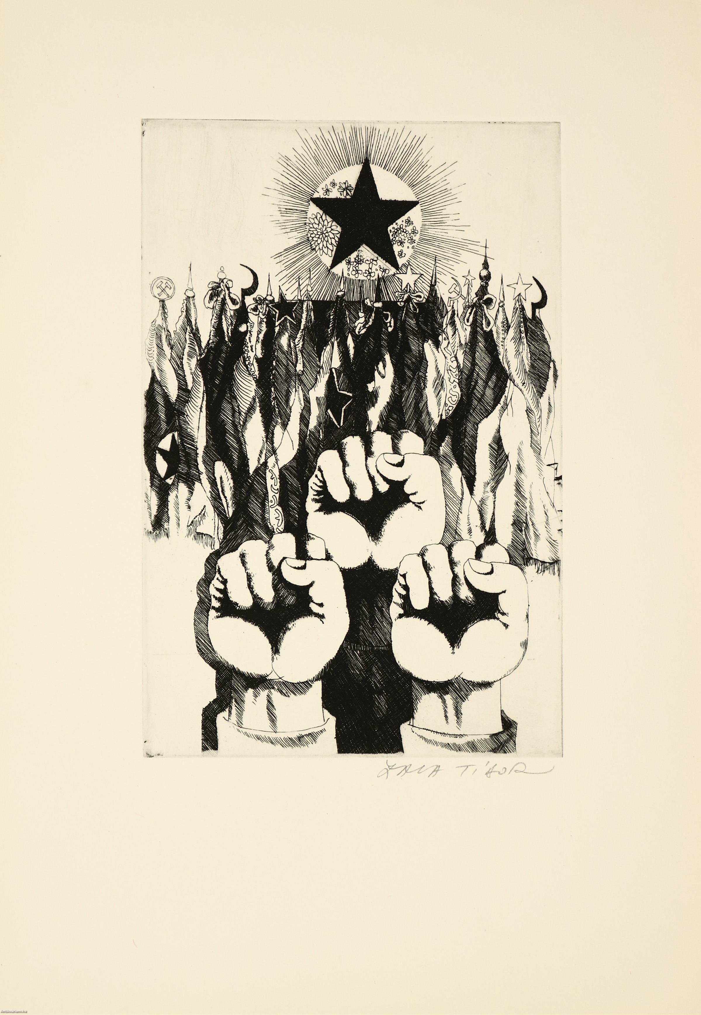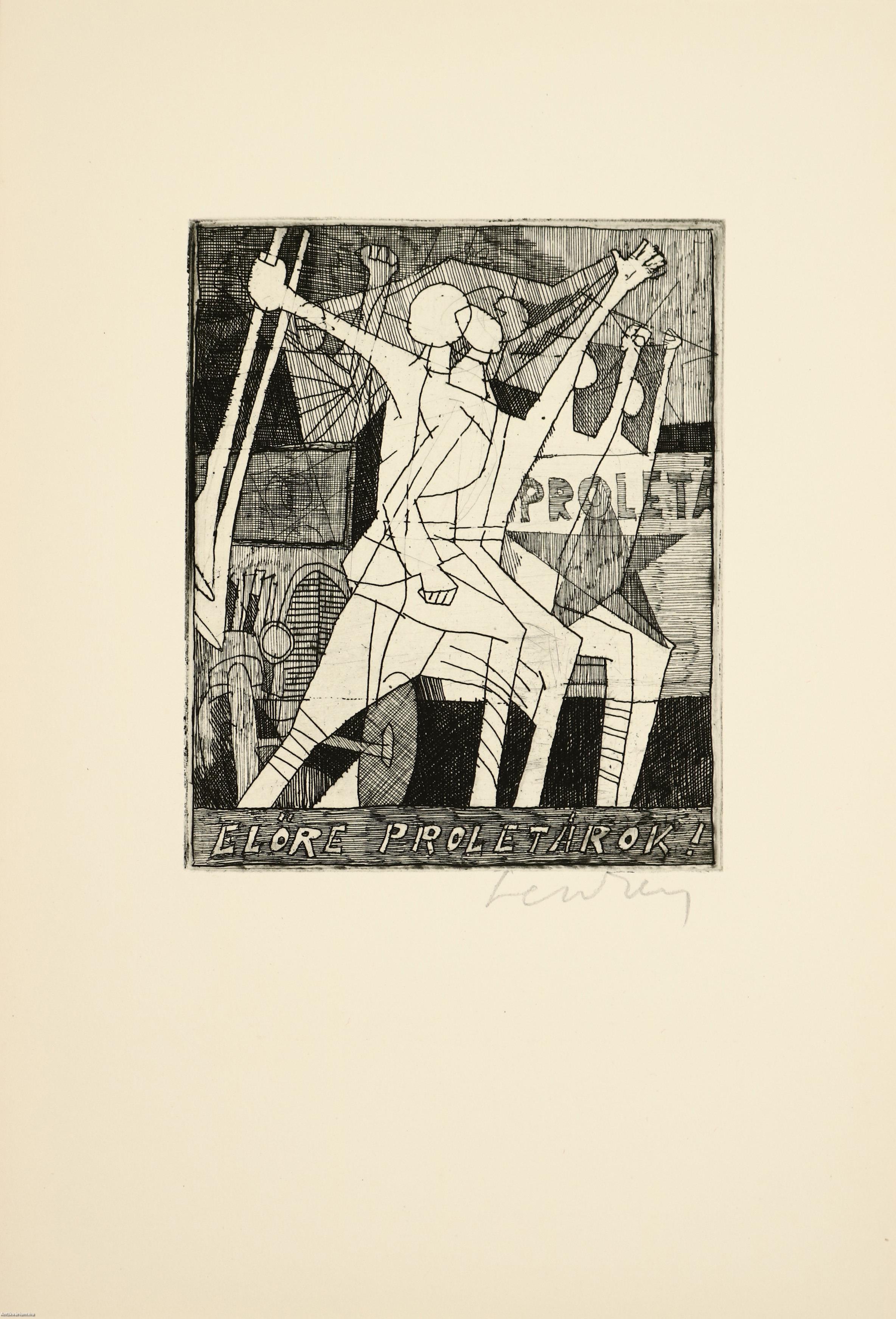 10. Előre ploretárok! (rézkarc C3). Alkotó: Lenkey Zoltán.