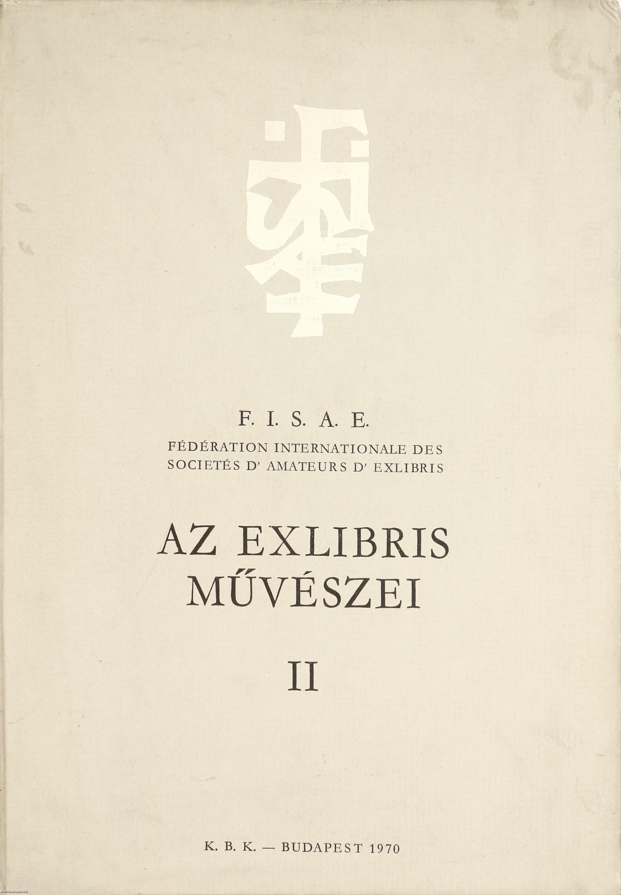 Magyar, német, angol és francia nyelvű kiadás. Közreadta: FISAE Fédération internationale des societés d'amateurs d' exlibris. Ez a kötet Kisgrafika Barátok Köre gondozásában, a Fisae „Artisti dell' Exlibris” I. kötetének tipográfiája szerint, a Bács-Kiskun Megyei Nyomda Vállalat Kecskeméti Üzemében Monó Garamond betűtípussal, magasnyomással 1970. októberében készült. Számos fekete-fehér és színes Ex-librissel illusztrált, valamint bevezetéssel és tartalomjegyzékkel kiegészített könyv.