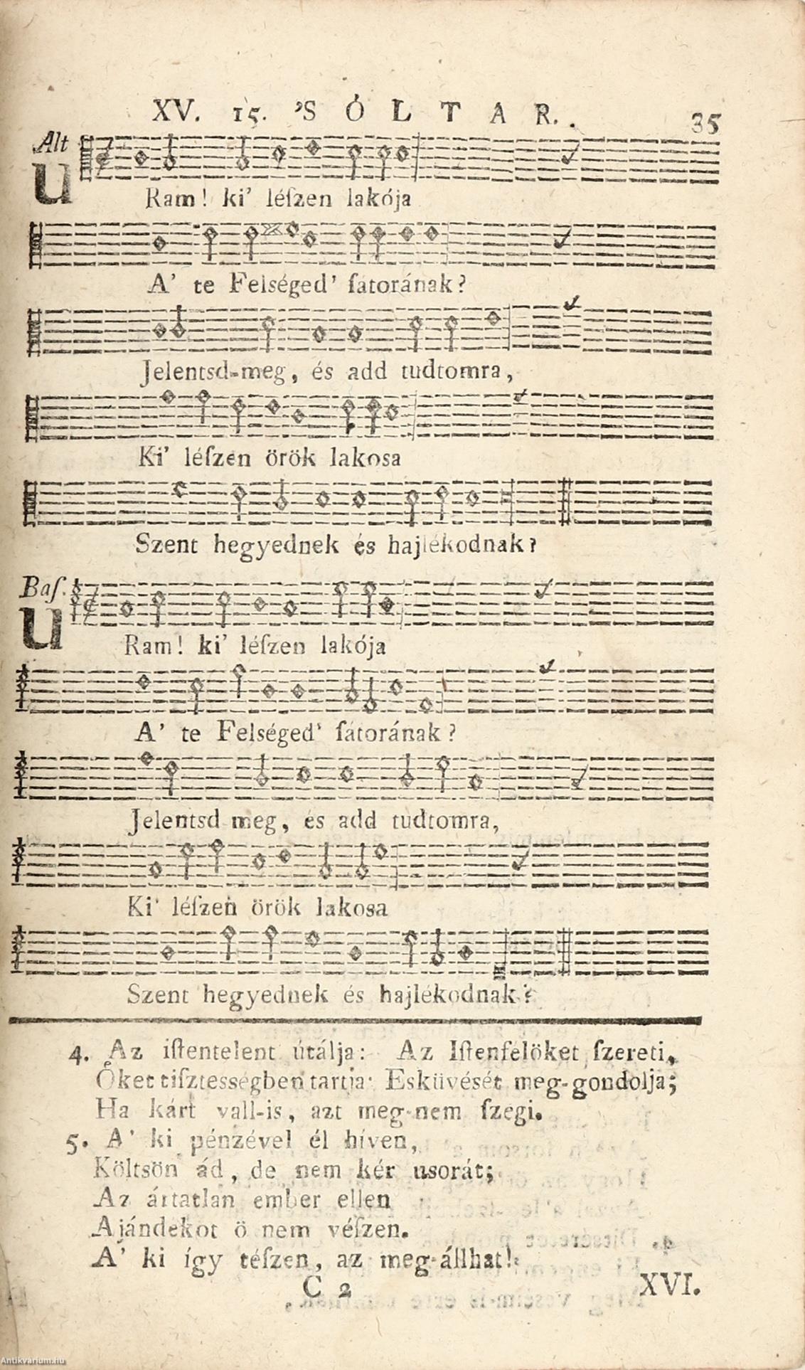 Mutatókkal, kottákkal, valamint A' Soltároknak A' Kóták Szerént való Éneklésének Mesterségének rövid summájával. Az előlapon és a címlapon tintával írt, régi tulajdonosi bejegyzések, a címfedél belső oldalára ragasztva színes illusztrációval ellátott ex libris címke látható.