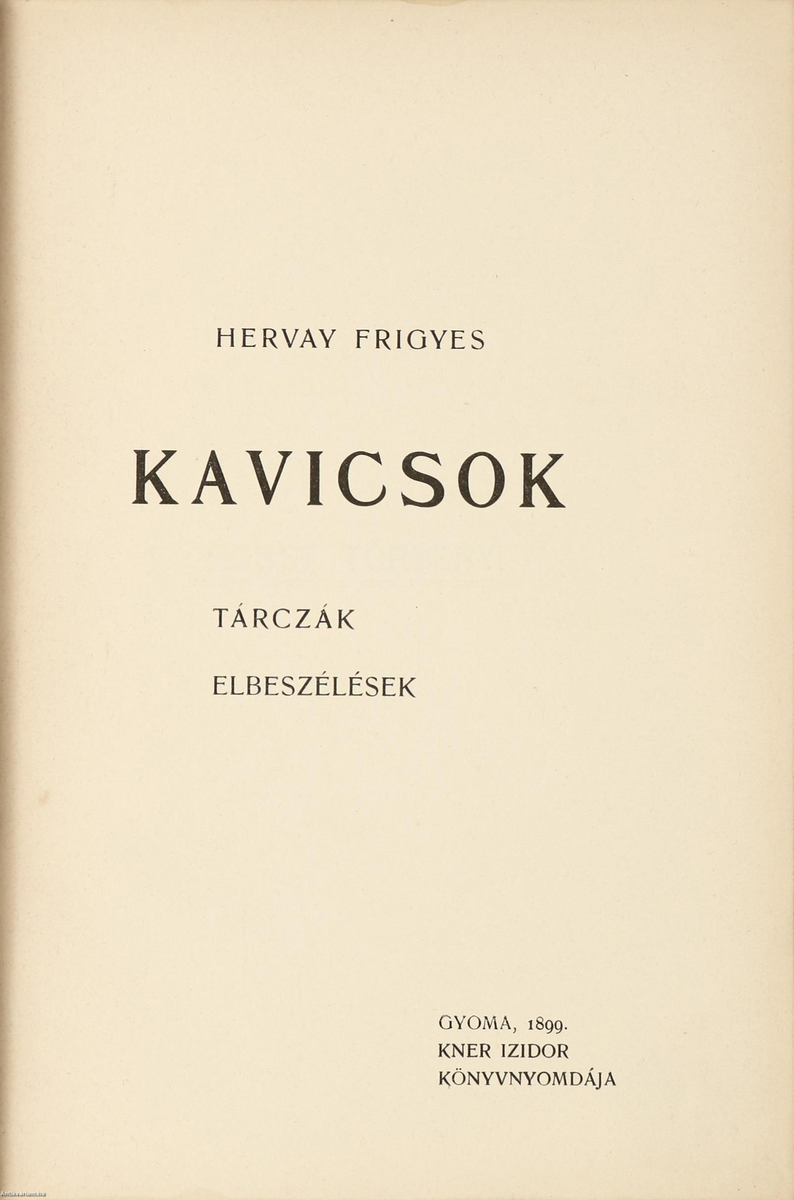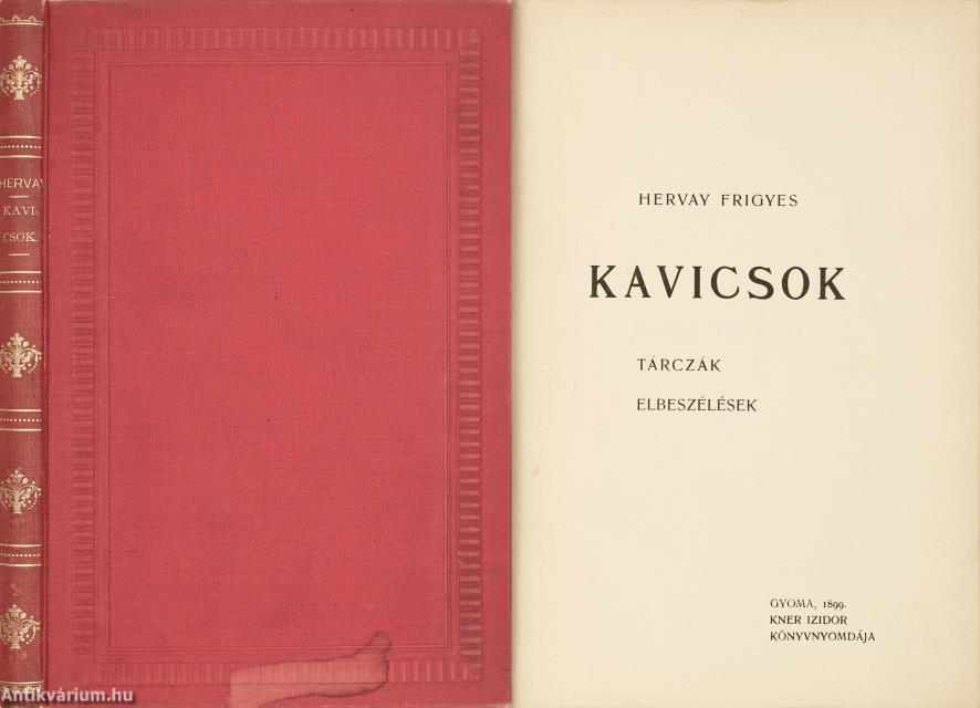 Első kiadás. Kavicsok. Tárczák, elbeszélések. Írta: Hervay Frigyes.