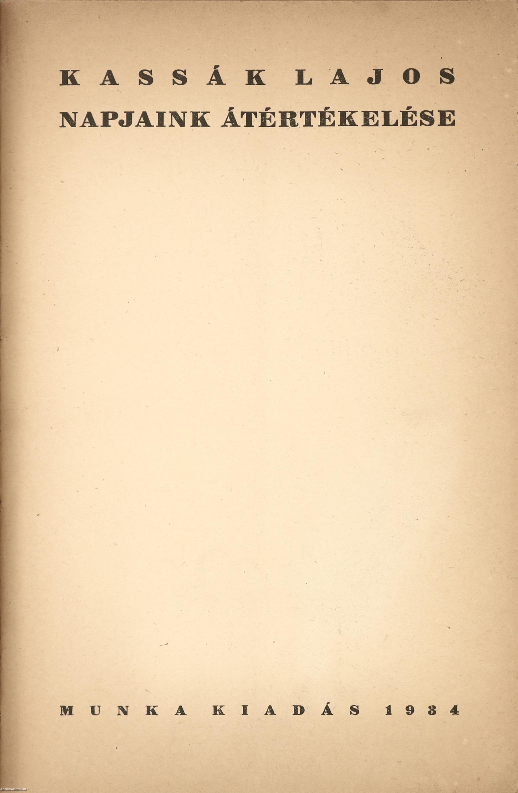 Első kiadás. Napjaink átértékelése. Írta: Kassák Lajos. "Ennek a kis könyvnek az anyaga, mint cikksorozat a Munka folyóirat számára készült. Az elsőt 1933 januárjában, az utolsót 1934 novemberében írtam. A tíz közlemény tartalmán utólag semmit nem változtattam."