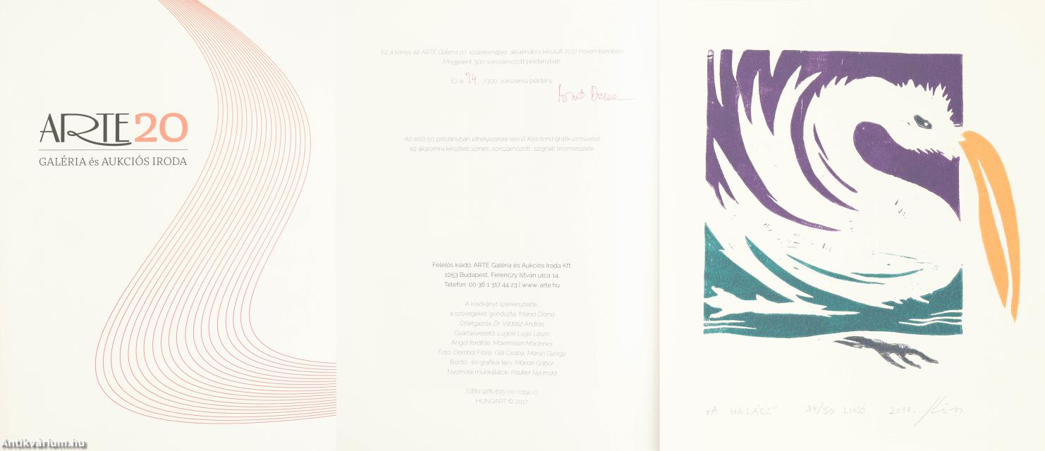 Az ARTE Galéria korábbi árverési tételeinek válogatott, színes, egész oldalas reprodukcióival gazdagon illusztrált, angol és magyar nyelvű előszóval, illetve a galéria történetét bemutató szövegrésszel, továbbá az 1997 és 2017 között a galériában rendezett kiállítások és aukciók listájával kiegészített alkalmi képművészeti kiadvány eredeti linómetszet melléklettel. Nyomtatta a Pauker Nyomda Budapesten. Borító- és grafikai terv: Márián Gábor.