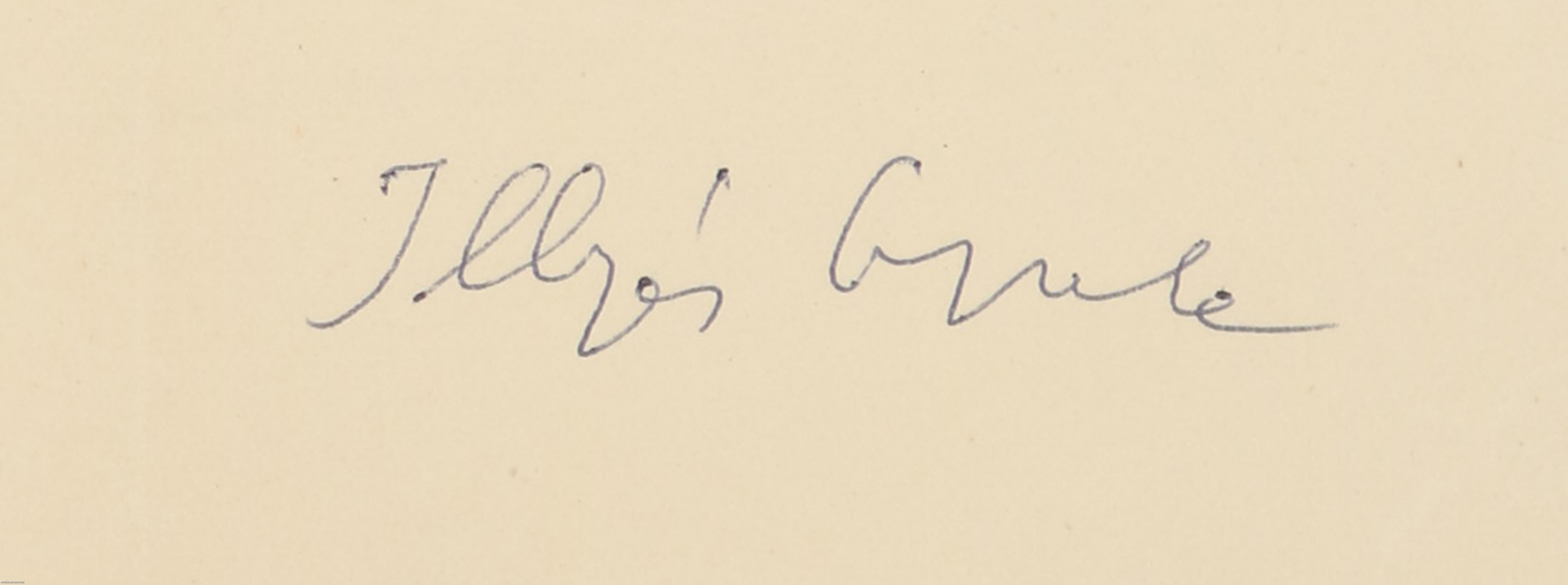 Illyés Gyula háromszoros Kossuth-díjas író tollal írt, jól olvasható aláírása látható.