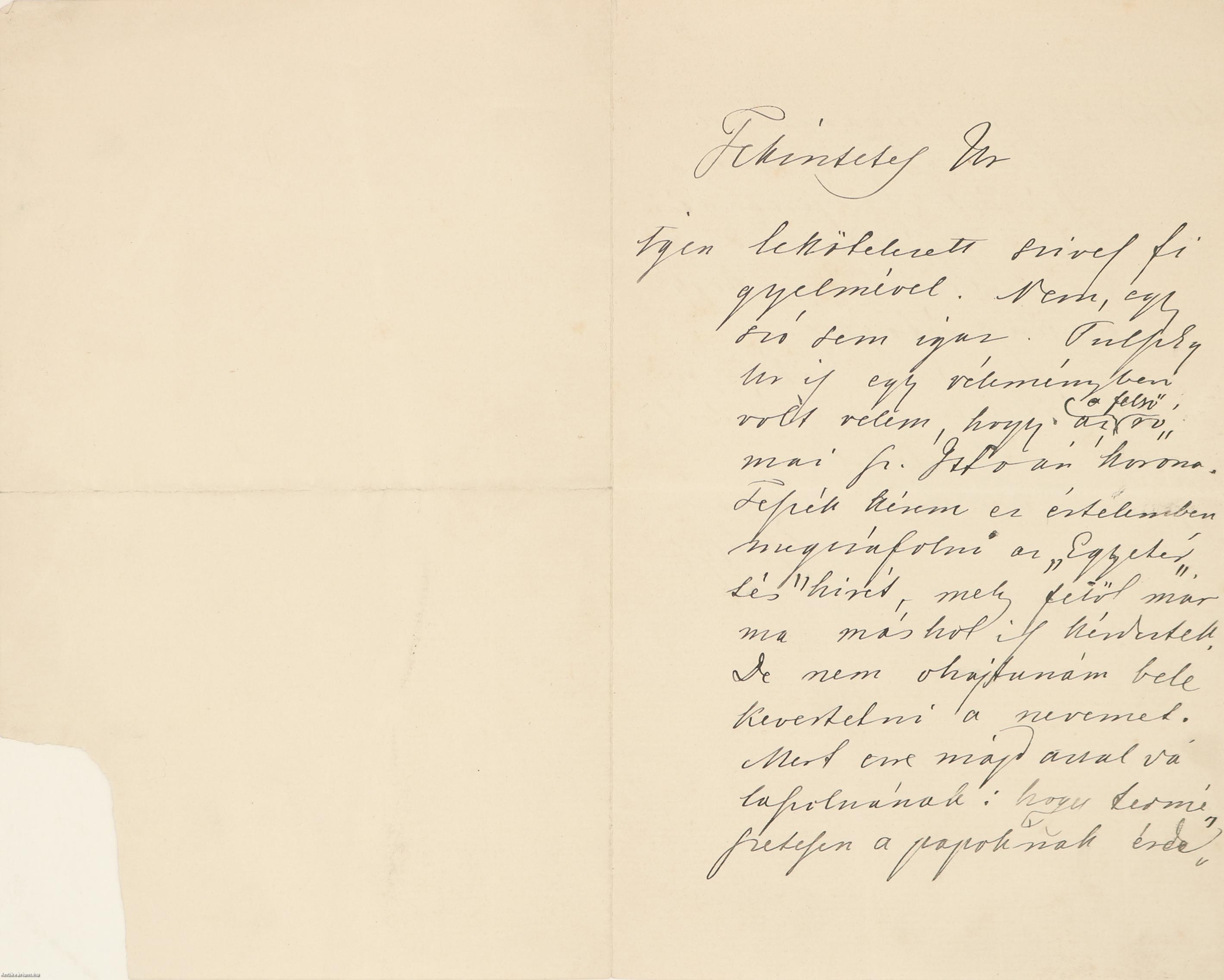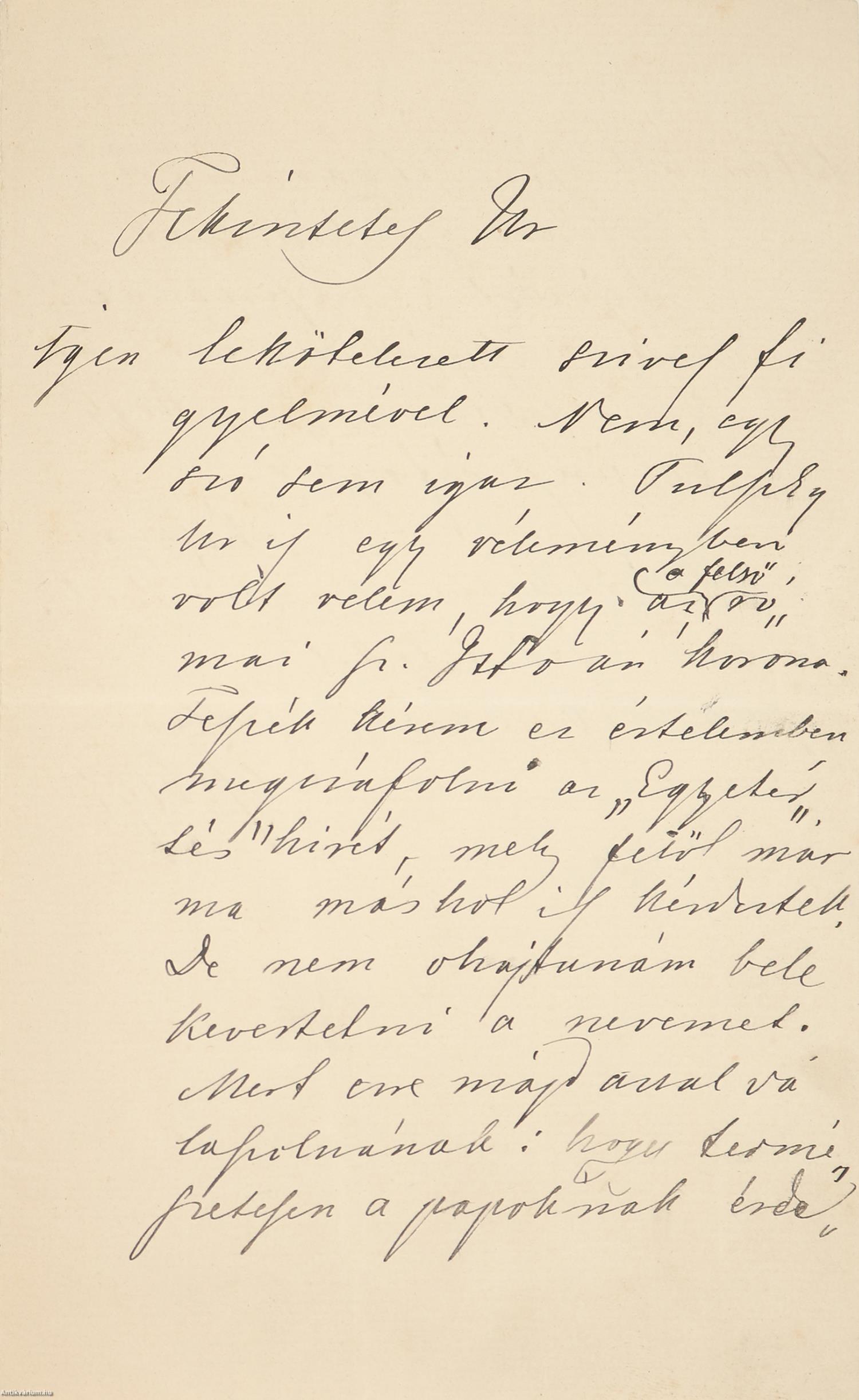 Igen lekötelezett szives figyelmével. Nem, egy szó sem igaz. Pulszky [Ferenc] Ur is egy véleményben volt velem, hogy az a felső római Sz. István korona. Tessék kérem ez értelemben megcáfolni az „Egyetértés” hirét, mely felől már ma máshol is kérdeztek. De nem ohajtanám belekevertetni a nevemet. Mert erre majd azzal válaszolnának: hogy természetesen a papoknak érdekében áll Sz. Istvánénak mondani. Tessék csak a kifejezést használni: hogy a legjobban értesült vizsgalóktól tudja, hogy ez üres ráfogás.