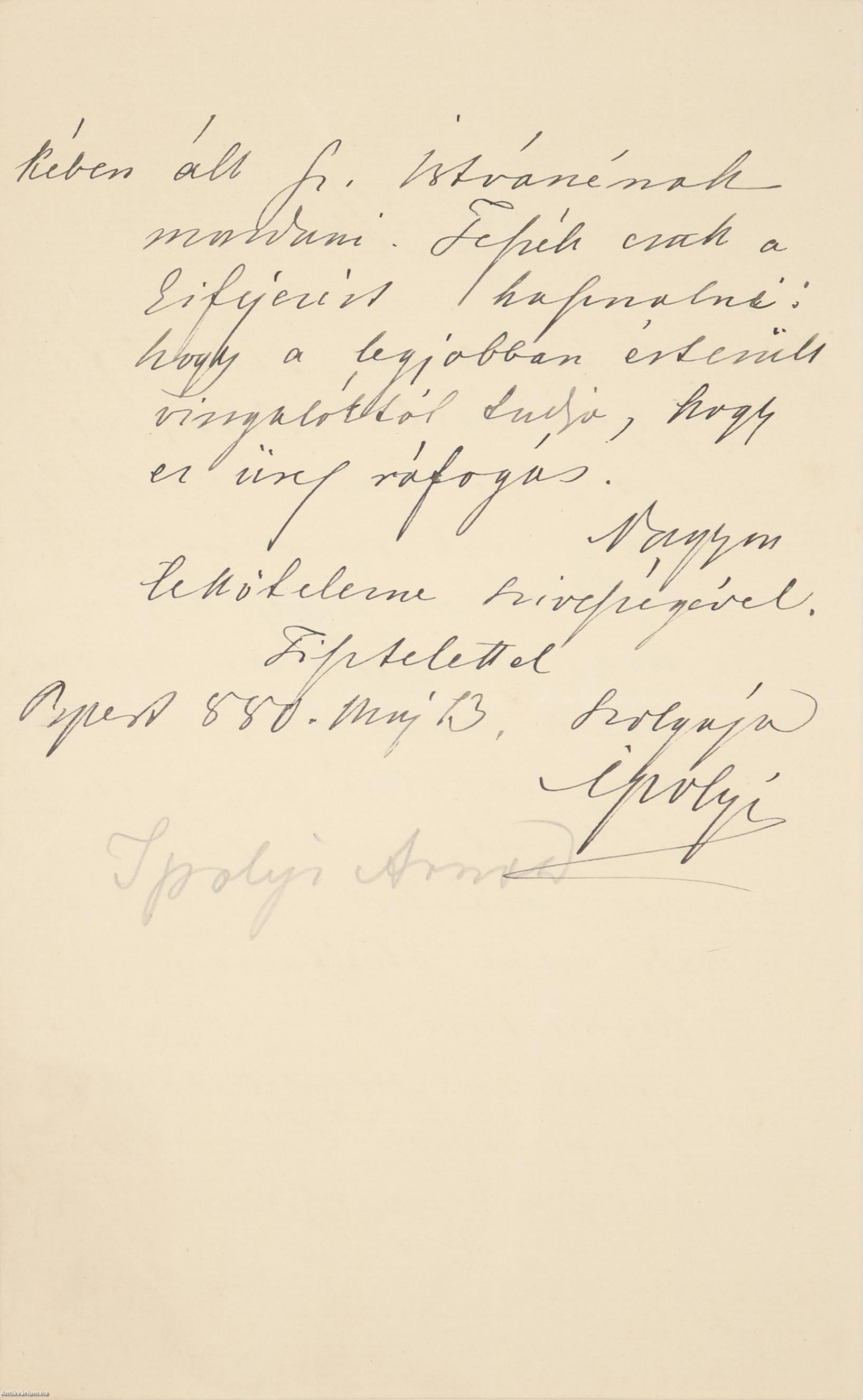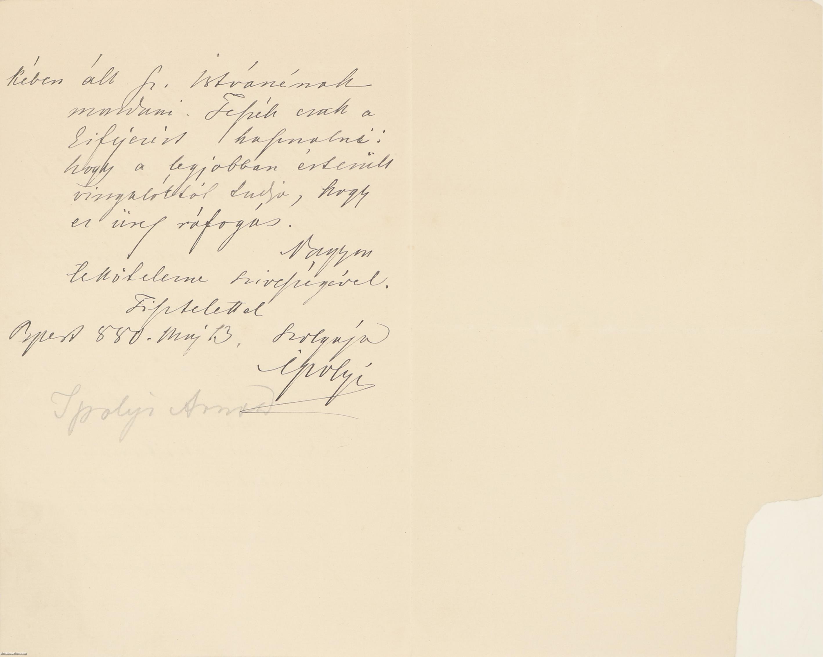 Tisztelettel szolgája Ipolyi"
