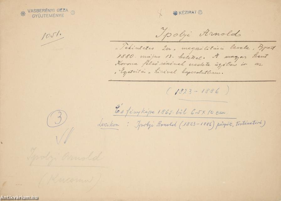 Ipolyi Arnold autográf levele. [kézirat]