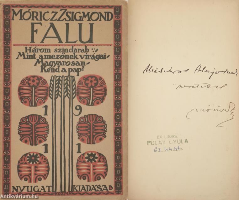 Ennek a kötetnek a most előkerült példányát így dedikálta Móricz: