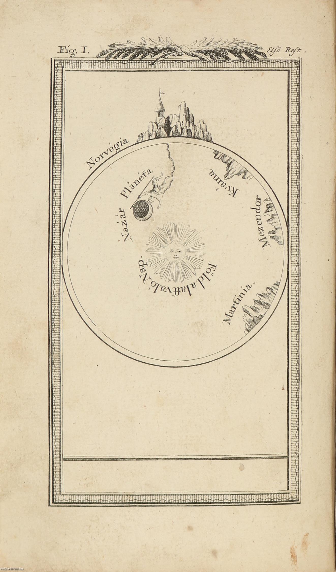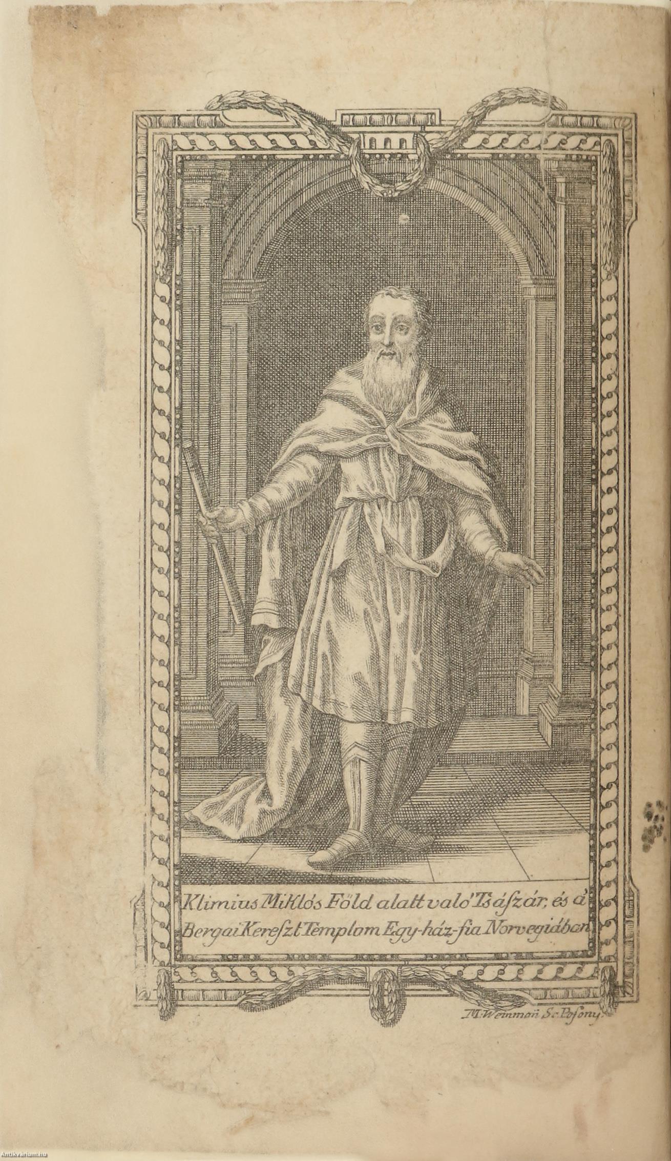 Első magyar nyelvű kiadás. Klimius Miklósnak föld alatt való utja mellyben a' Földnek ujj tudománya, és az ötödik birodalomnak historiája adattatik elöl. B. Abeliunus könyves házában találtatott, és deákból magyar nyelvre fordittatott Györi Jósef veszprémi prókátor által. [Írta: Ludvig Holberg.]