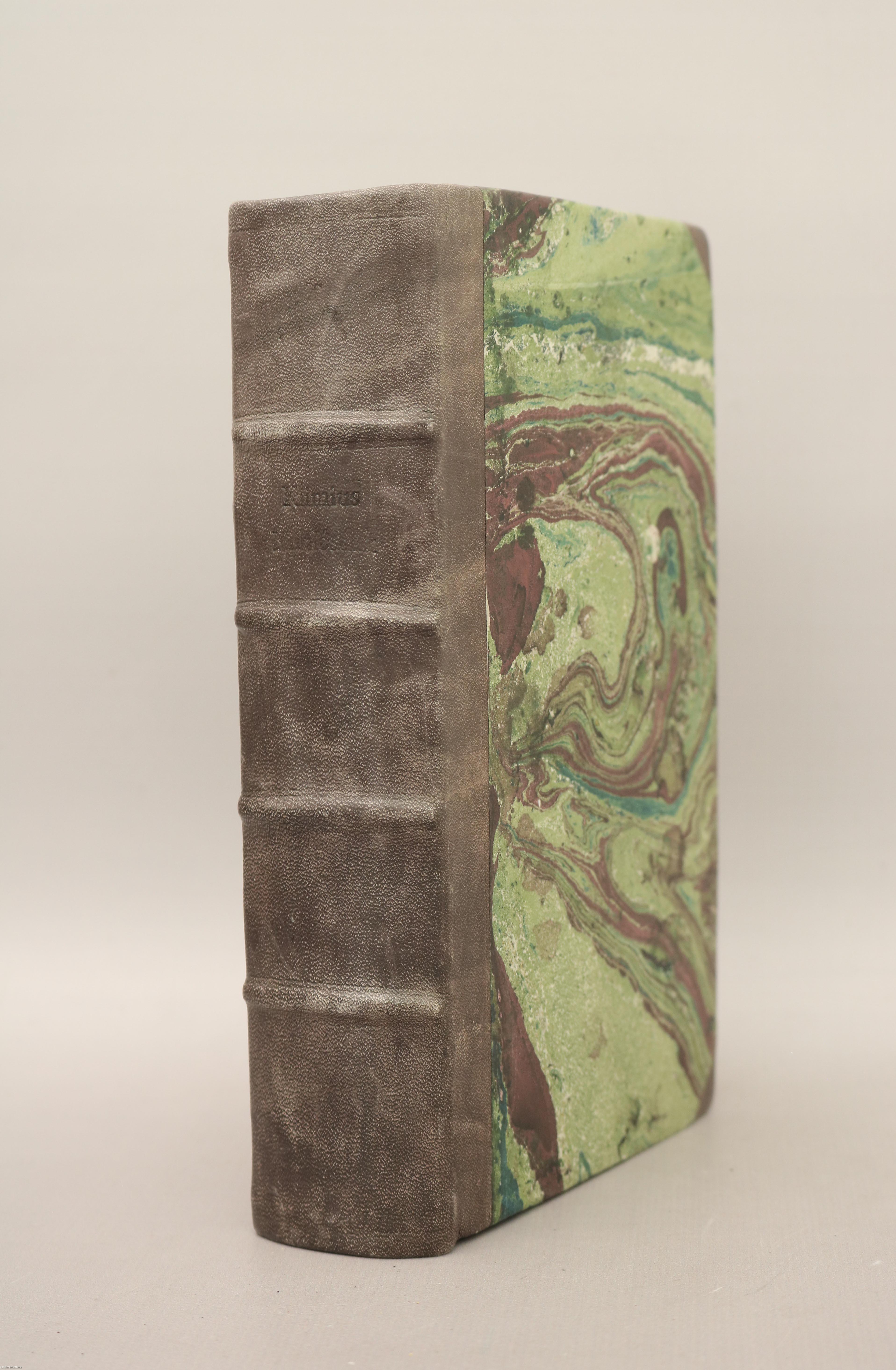 Modern félbőr kötésben lévő példány feliratozatlan, színes, márványmintás címfedéllel és hátlappal, feliratos, vaknyomással díszített könyvgerinccel, modern előzéklapokkal, japán papírral restaurált címlappal és címlapképpel, valamint további néhány japán papírral javított oldallal, több helyen foltos belívekkel. A 237-238. oldalakat tartalmazó lap alsó sarka utólagosan pótolt, a sérülésből eredő szöveghiányt tollal beírva korrigálták. A kötet az egyik legkorábbi magyar nyelven kiadott tudományos-fantasztikus mű. Szerzője Ludvig Holberg (1684-1754) norvégiai születésű dán író, aki 1741-ben jelentette meg Nicolai Klimii iter Subterraneum [Klimius Miklósnak föld alatt való utja] c. latin nyelvű disztópikus szatíráját. A könyv Jonathan Swift Gulliverjéhez hasonlóan egy társadalomkritikát is tartalmazó fantasztikus kalandregény, amelyben a főhős fordulatokkal teli útja során egy föld alatti világba jut, és az ottani csodás kalandjait beszéli el. Holberg műve a tudományos-fantasztikus regény prototípusának, a sci-fi és fantasy műfajok közös előfutárának tekinthető. A könyv először 1783-ban jelent meg magyarul, Györfi Miklós veszprémi ügyvéd fordításában, utána azonban sokáig feledésbe merült. Újabb magyar kiadása majd csak 1987-ben látott napvilágot.