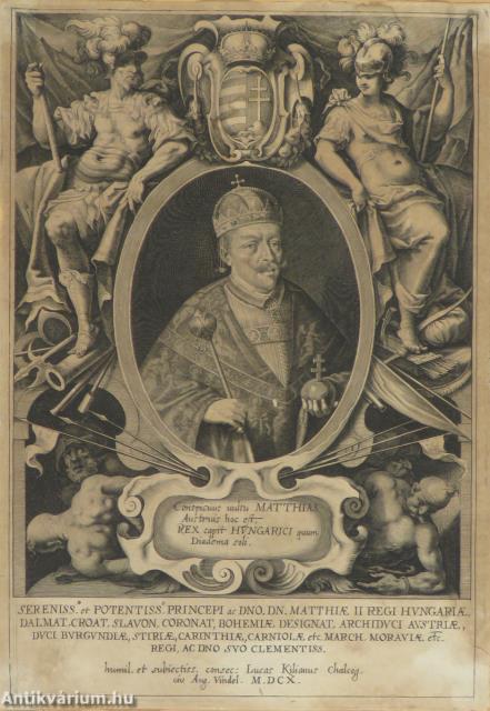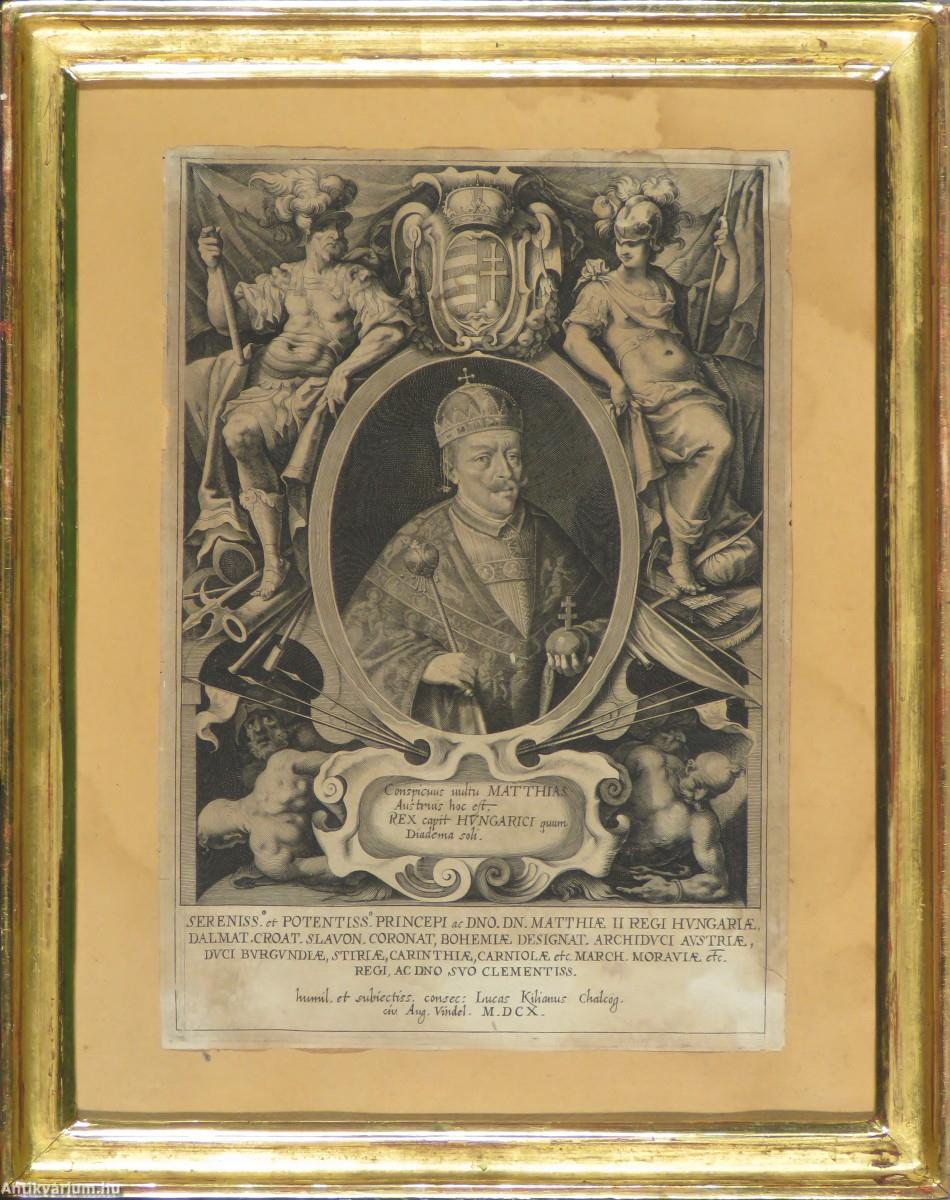 Kilianus Lucas: Matthiae II regi Hungariae - rézmetszet, papír, 31,5 cm x 22 cm [A képen II. Mátyás látható koronázási díszben. Készült: 1610-ben.]