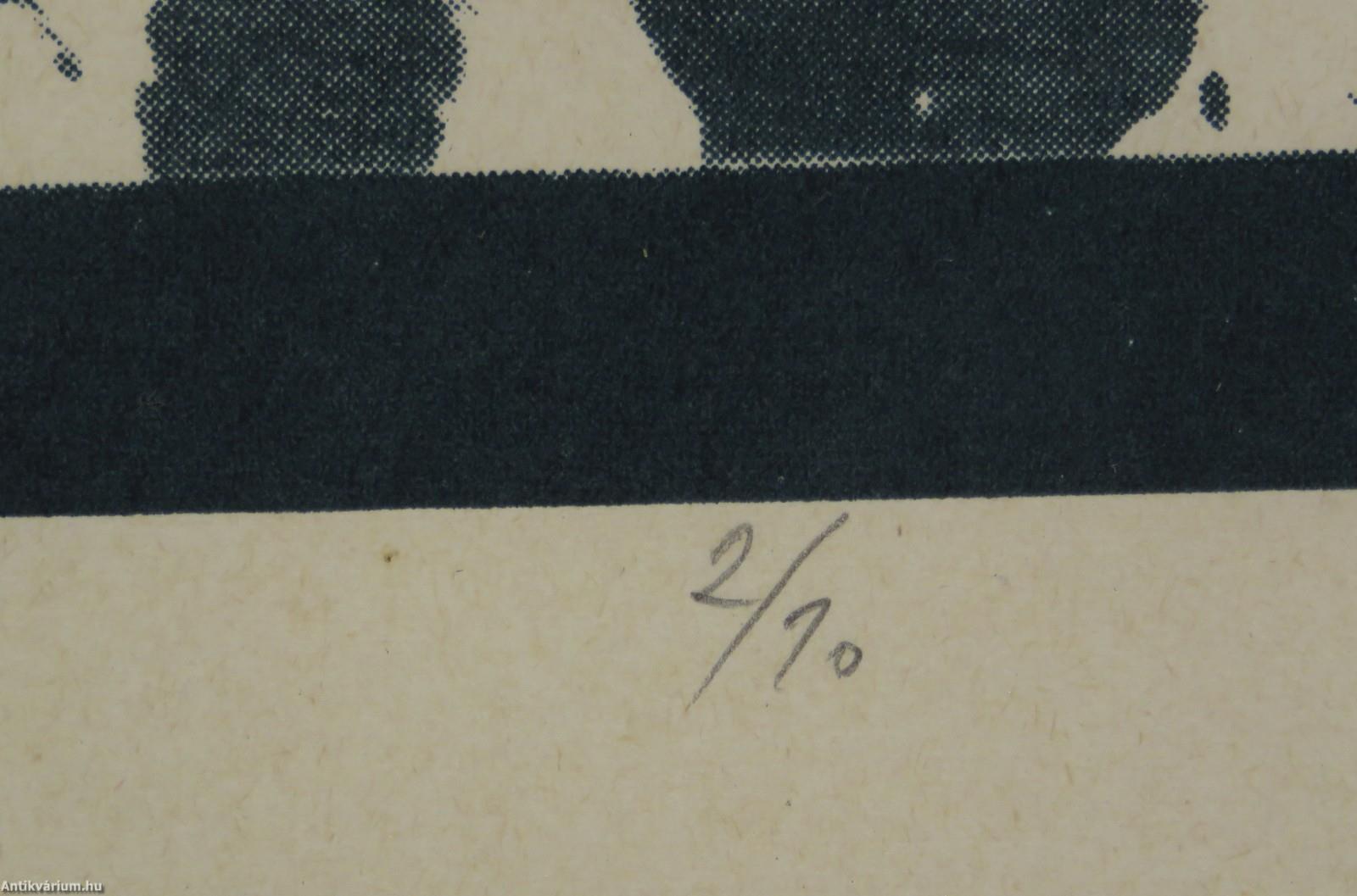 Jelzés lent: "Gyerek" szita, 2/10, Szikora Tamás 84 (ceruzával). Összesen 10 példányban készül, amelyből ez a 2. sorszámú példány.