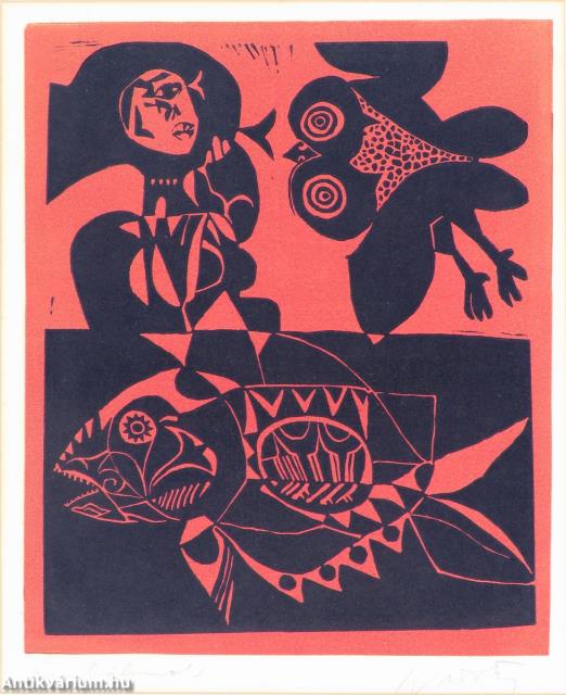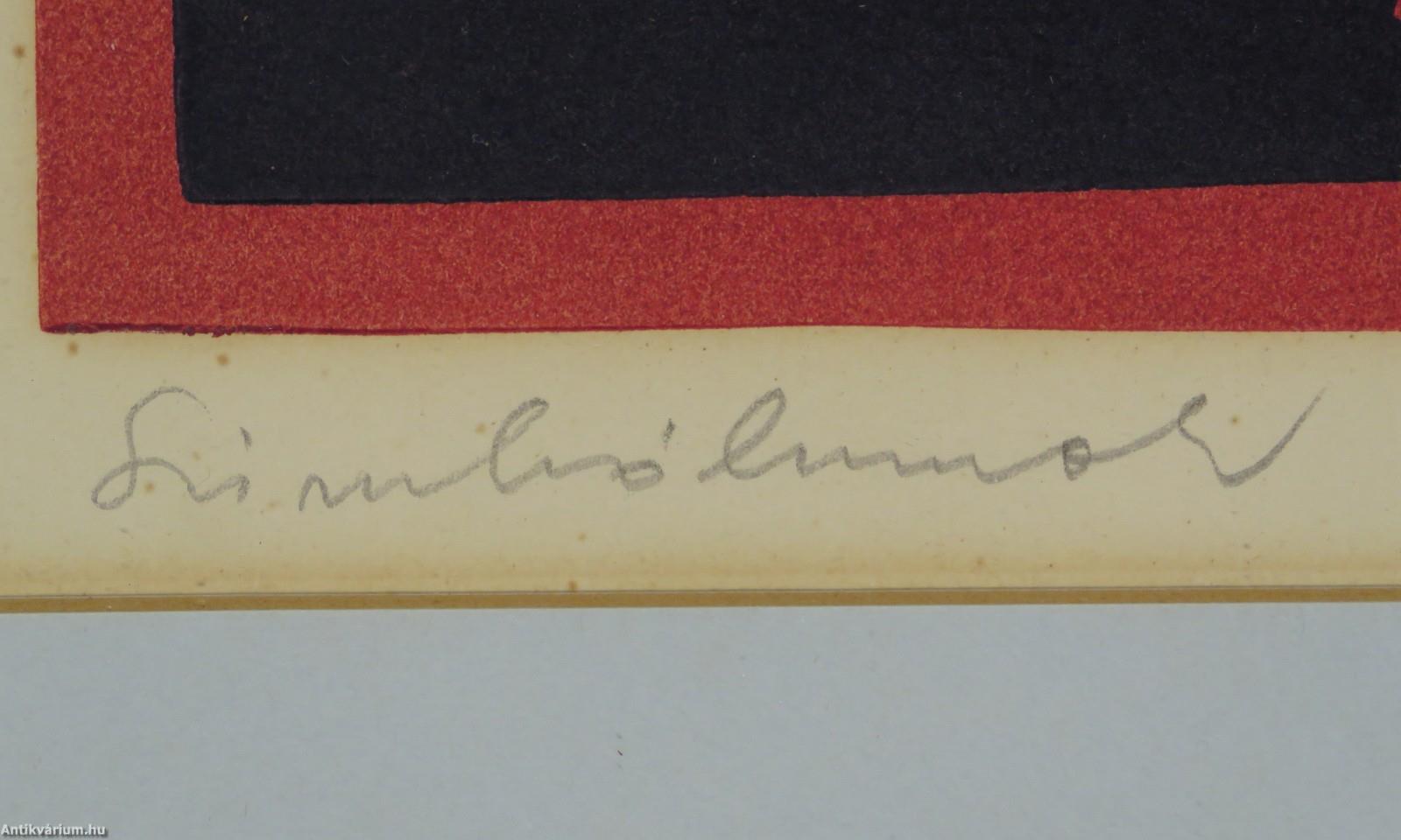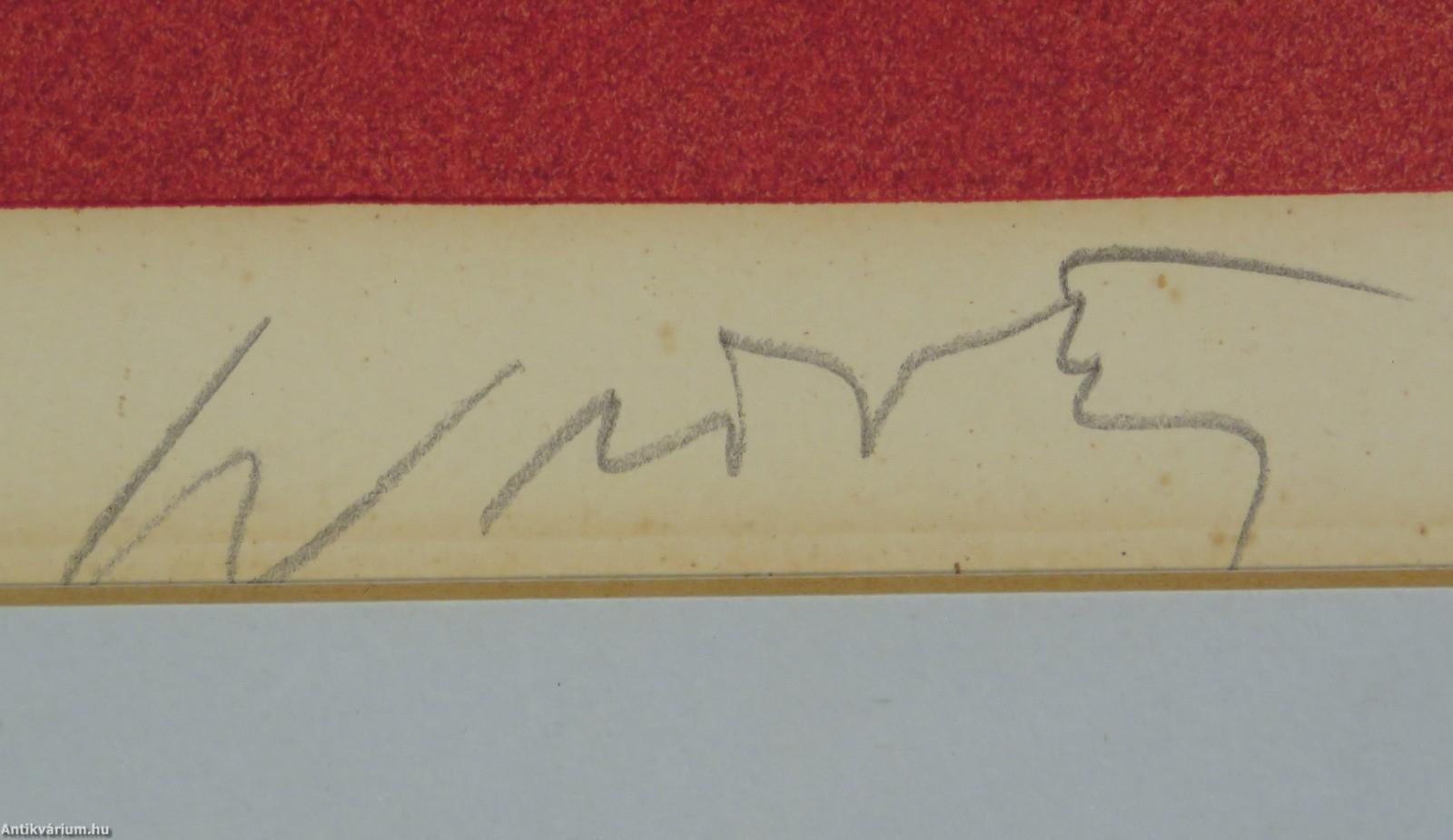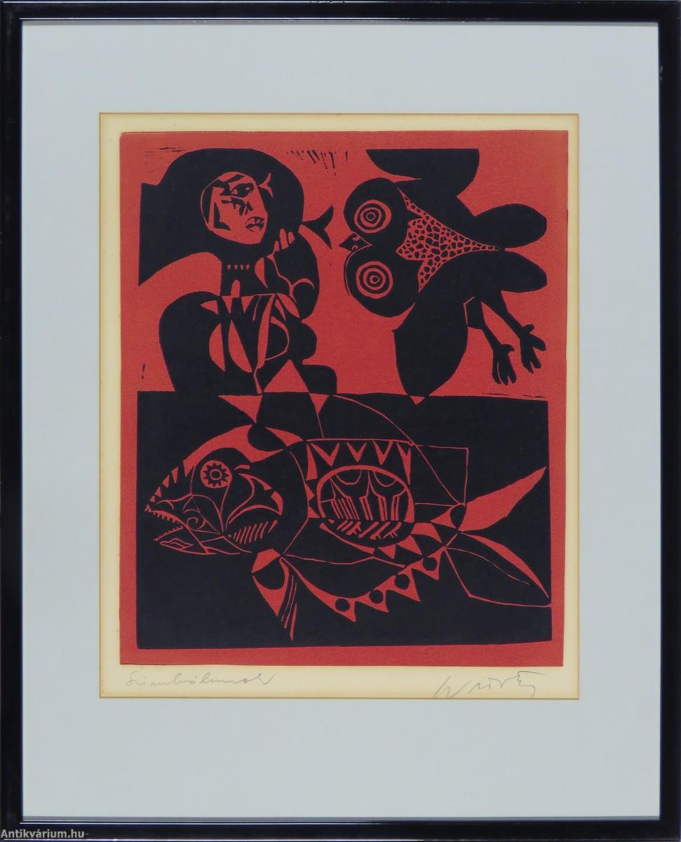 Jelezve balra lent: Szimbólumok (ceruzával), jobbra lent Würtz (ceruzával), színes linómetszet, papír.