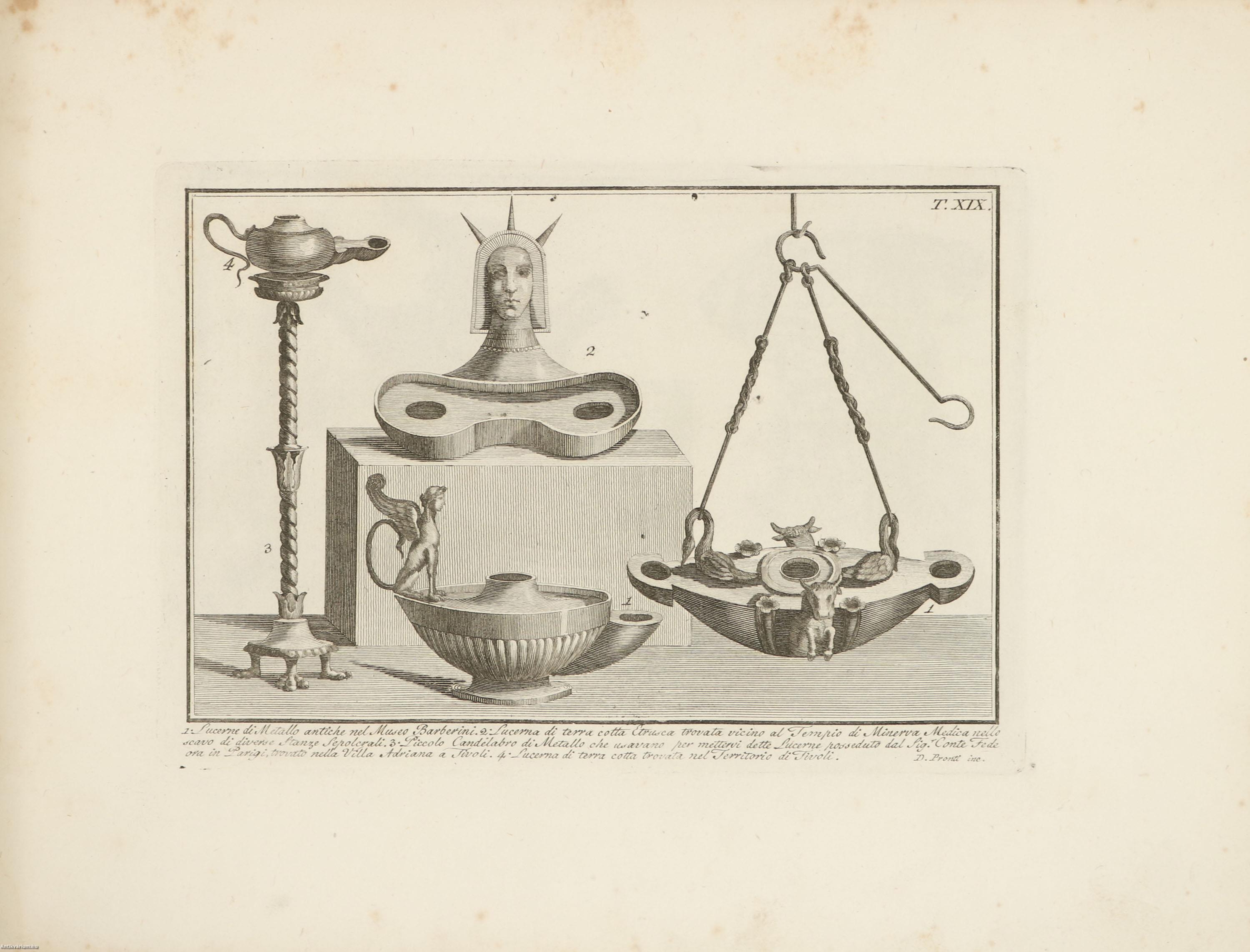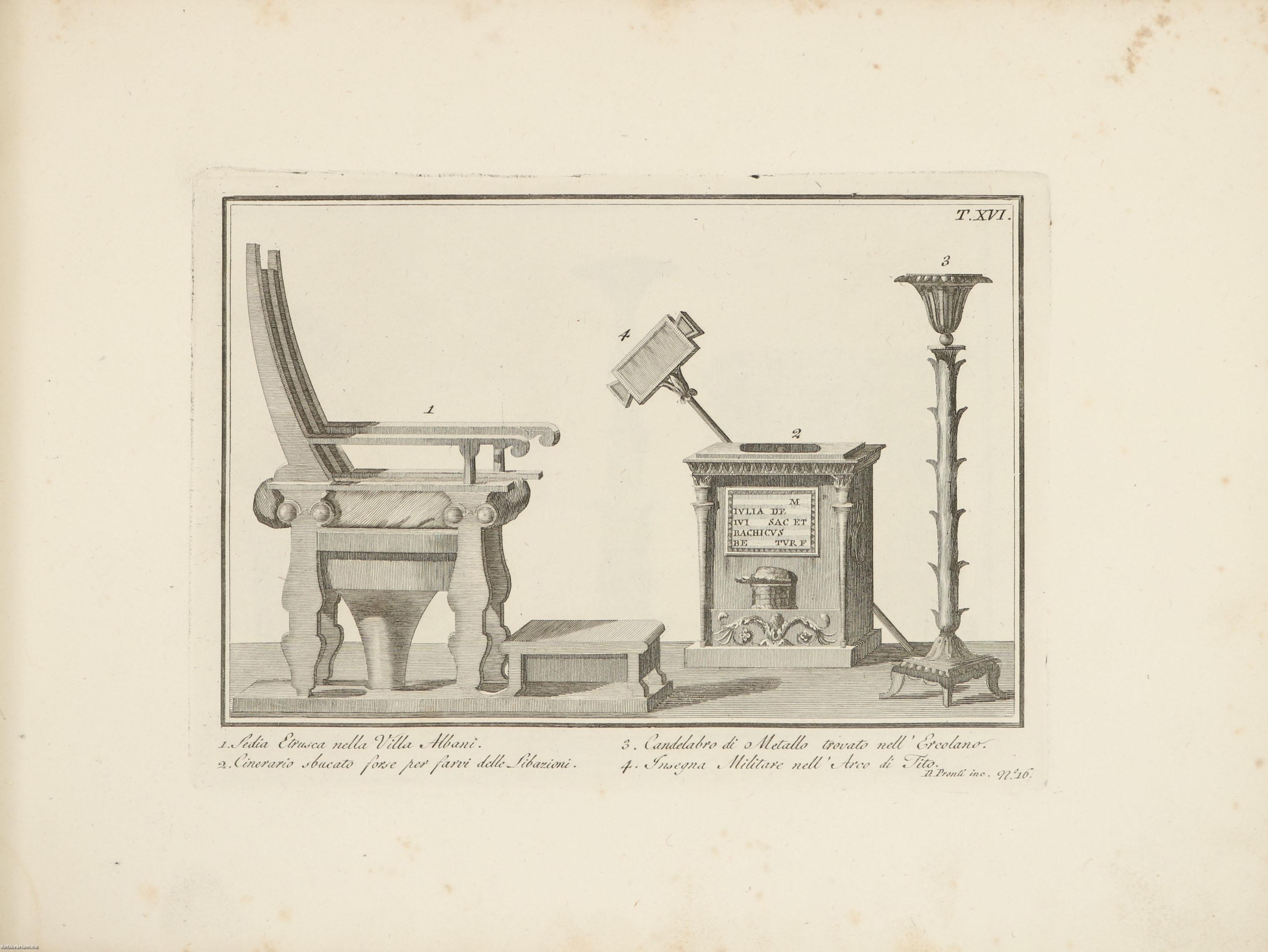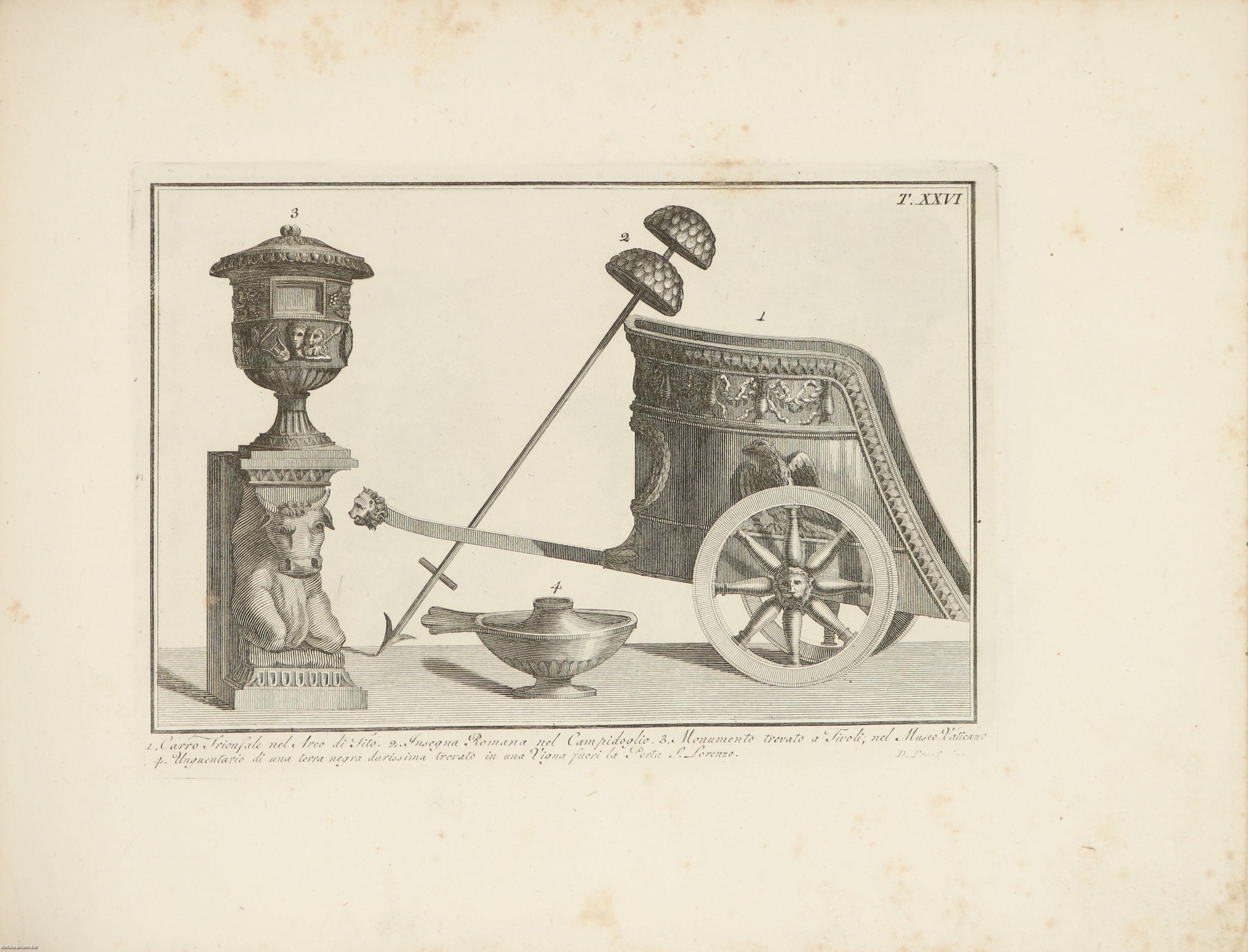 Nuova raccolta rappresentante i costumi religiosi civili, e militari degli antichi Egiziani, Etruschi, Greci, e Romani. ... Disegnata, ed incisa in rame da Domenico Pronti. [Új gyűjtemény, mely az ókori egyiptomiak, etruszkok, görögök és rómaiak vallási, polgári és katonai szokásaihoz kapcsolódó dolgokat hivatott bemutatni. ... Rajzolta és rézbe metszette Domenico Pronti.] A kötet kiadási éve [cca. 1800 körül.]