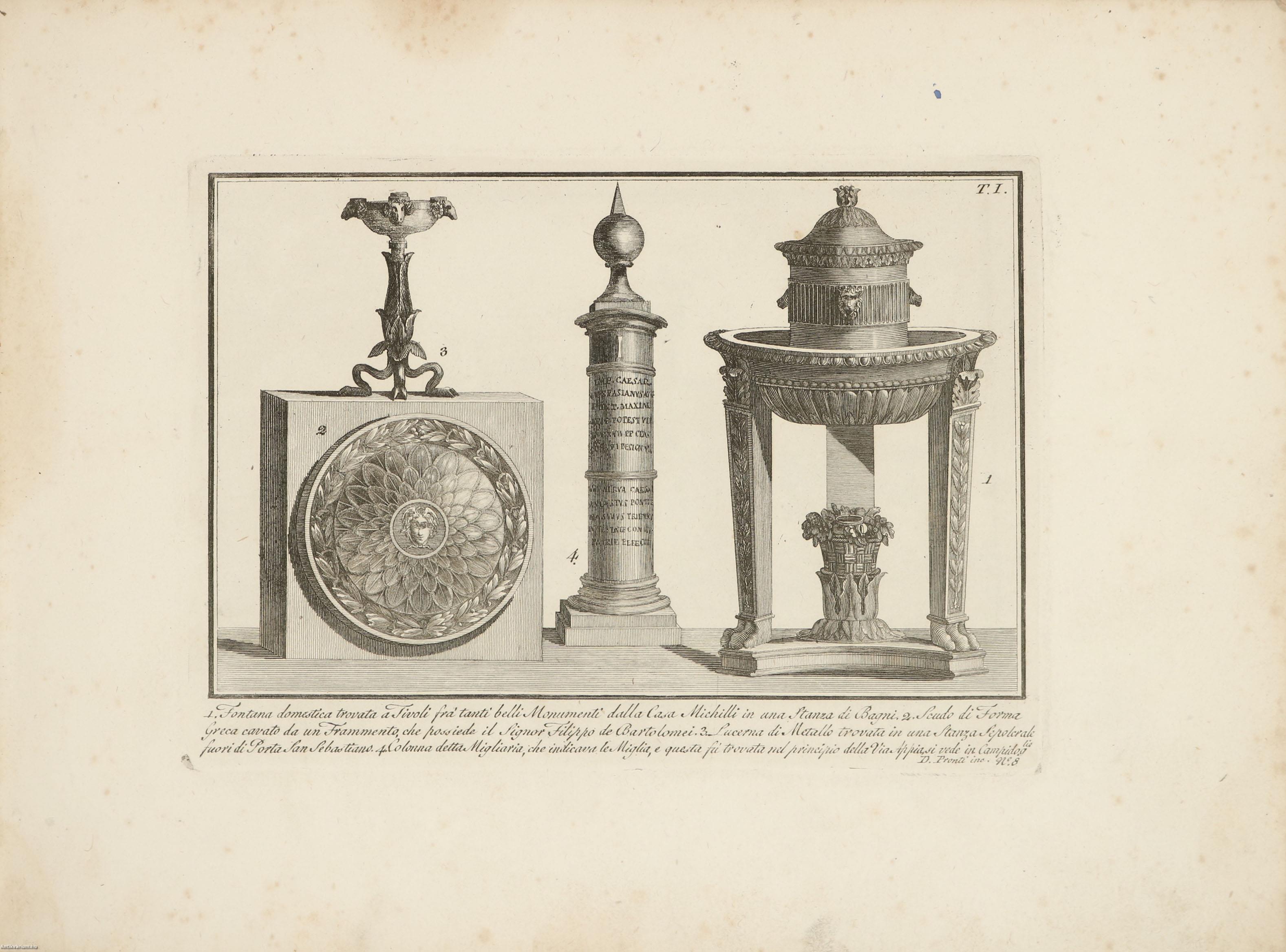 A kötet metszeteit Domenico Pronti (1750-1815?) olasz rézmetsző mester készítette. A római illetőségű Pronti a 18-19. század fordulójának ismert grafikusa volt. Neve elsősorban a Róma ókori műemlékeit megörökítő metszeteiről volt ismert, amelyeket a korabeli "grand tour"-t teljesítő, elsősorban arisztokrata származású utazók vásároltak előszeretettel utazásuk nevezetes látnivalóit megörökítő emlékekként.