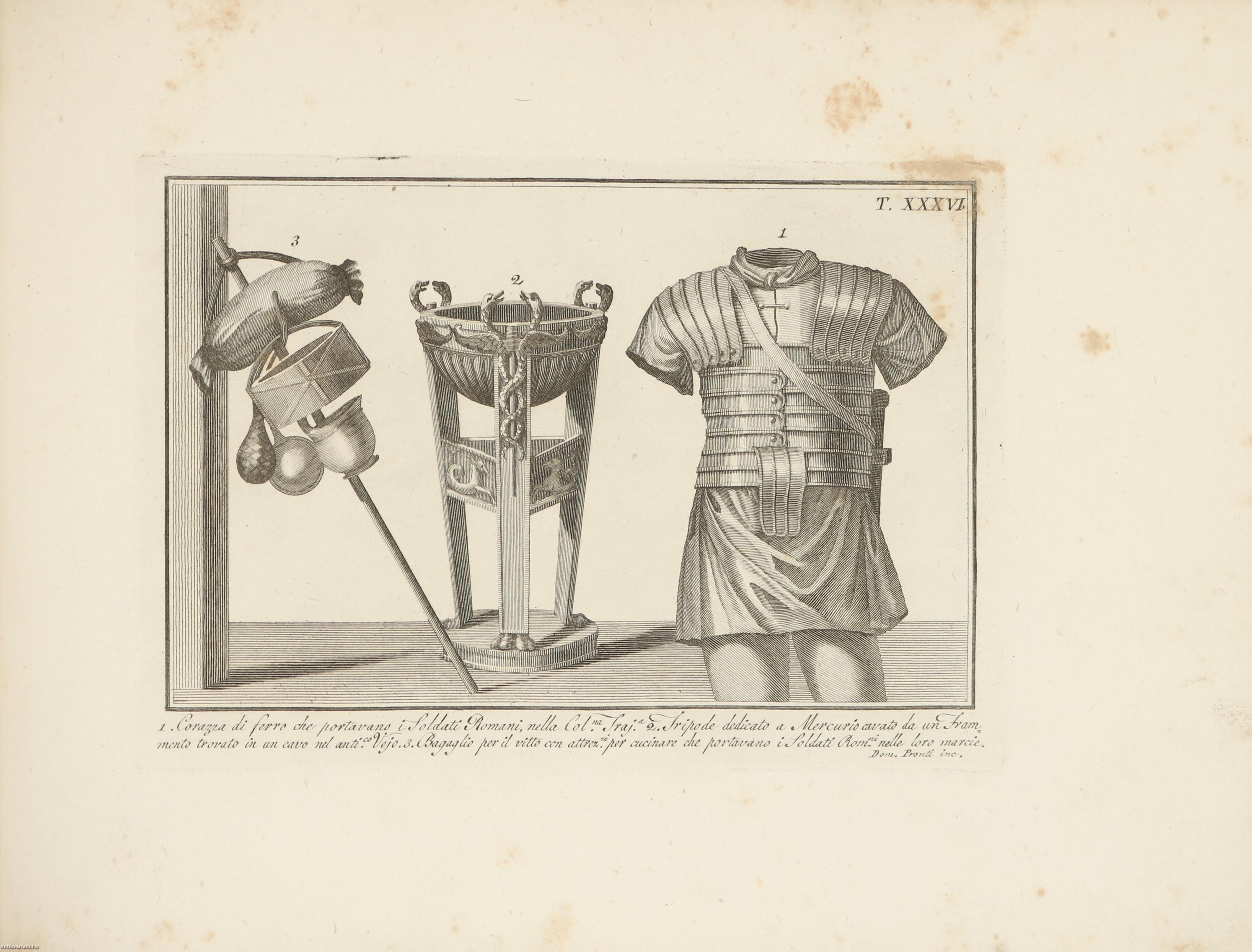 48 számozott és 1 számozatlan képtáblán rézmetszeteket tartalmazó, olasz nyelvű kiadvány. A képaláírásokon kívül összefüggő szöveges részt nem tartalmaz. A címlapon tollal és ceruzával írt, régi tulajdonostól származó számjelzések, a gerincen egykori gyűjteményi jelzetek láthatók.