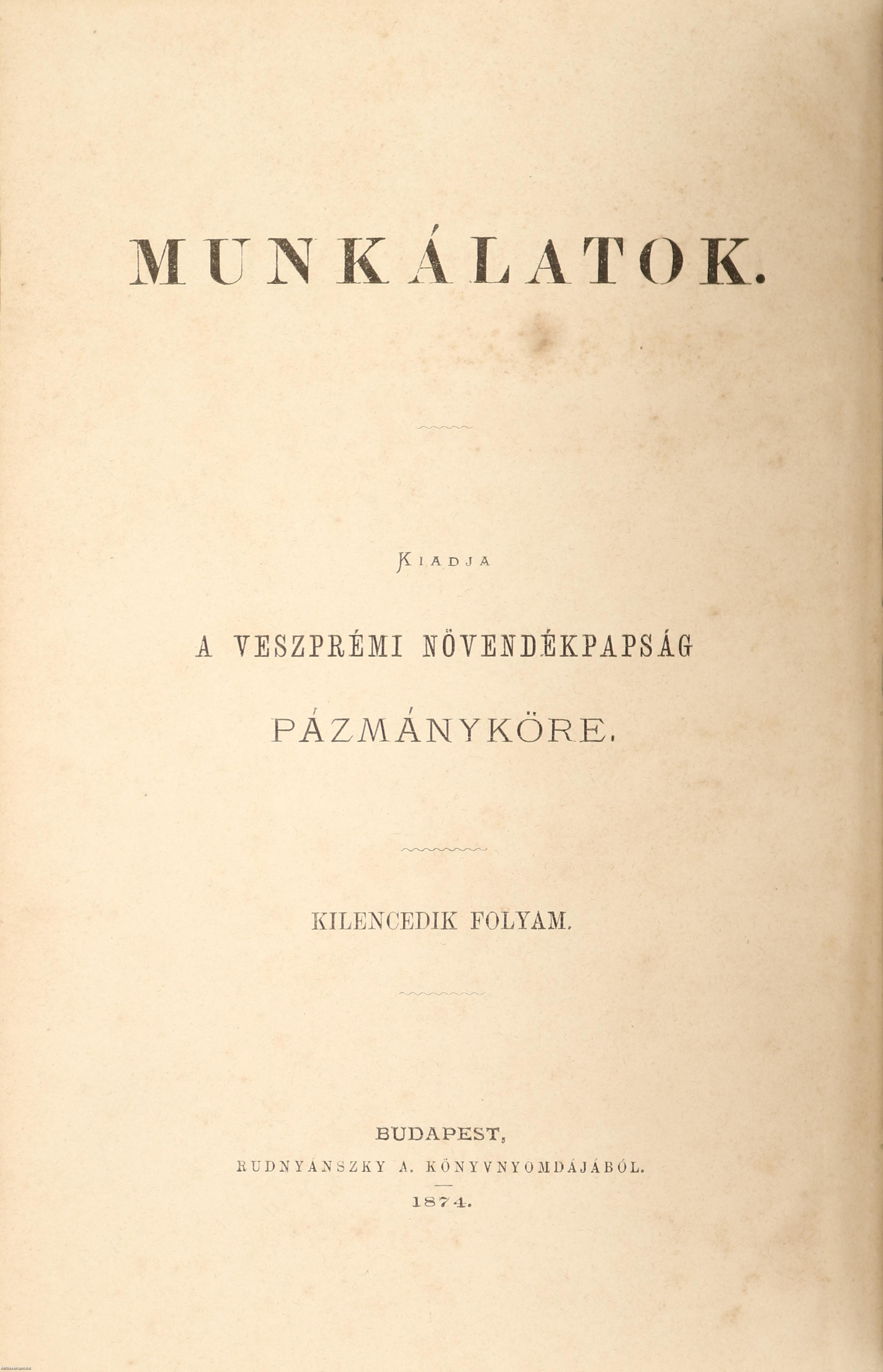 Budapest, 1874-1875, Rudnyánszky A. Könyvnyomdájából, XV p. + [1] p. + 365 p. + [1] p.; XIII p. + [3] p. + 306 p. + [1] p.