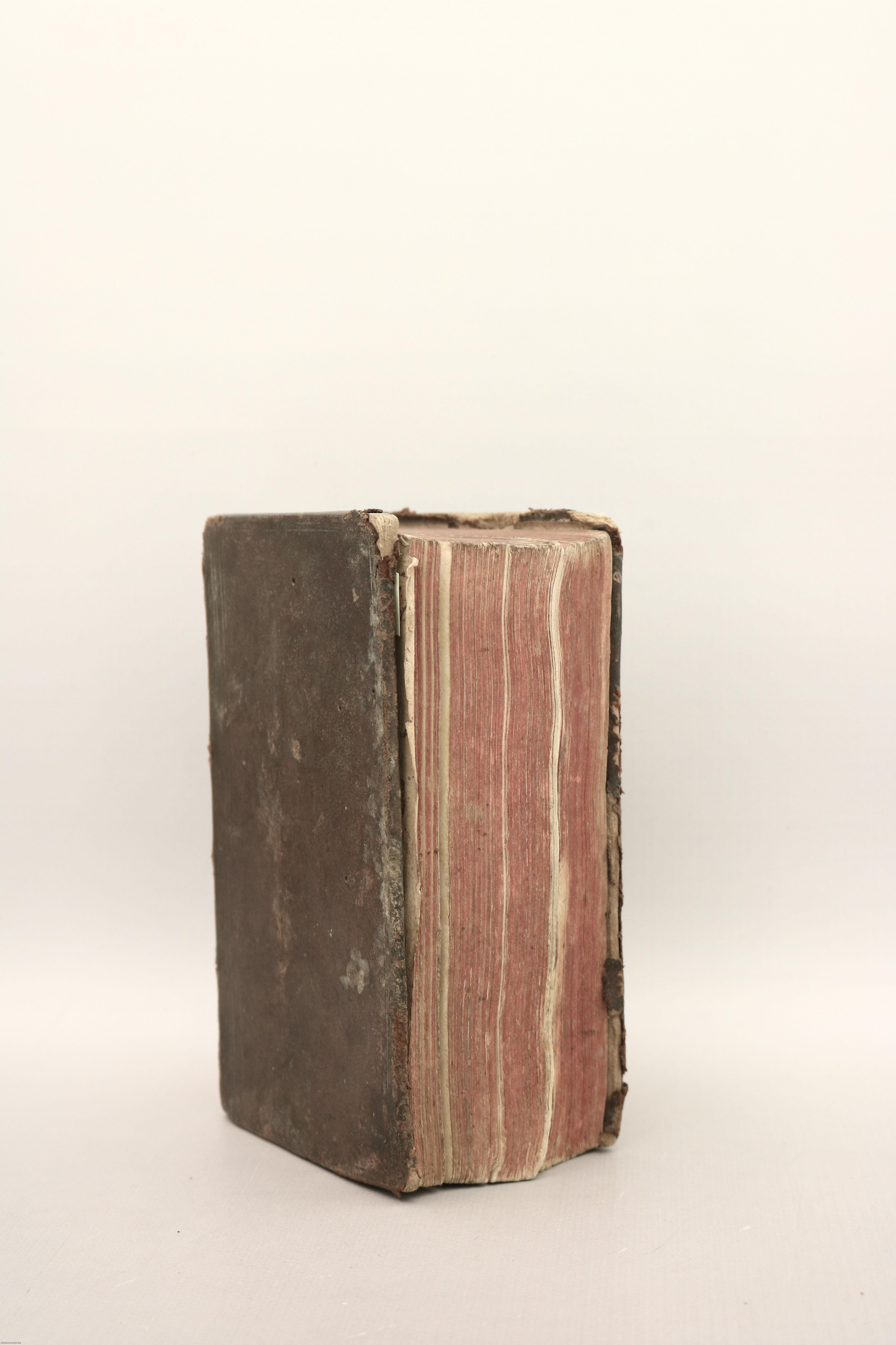 Korabeli bőrkötésen lévő példány feliratozatlan címfedéllel, feliratos, sérült könyvgerinccel, sérült, hiányos hátlappal, sérült, hiányos előzéklapokkal, színezett lapélekkel, néhány sérült, hiányos lapszéllel, tiszta belívekkel.