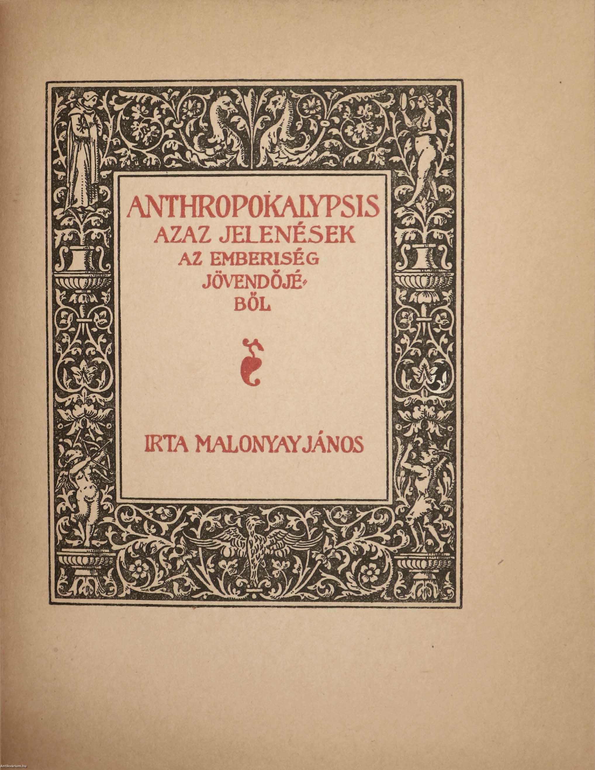 Malonyay János: Anthropokalypsis azaz jelenések az emberiség jövendőjéből (aláírt, számozott példány)