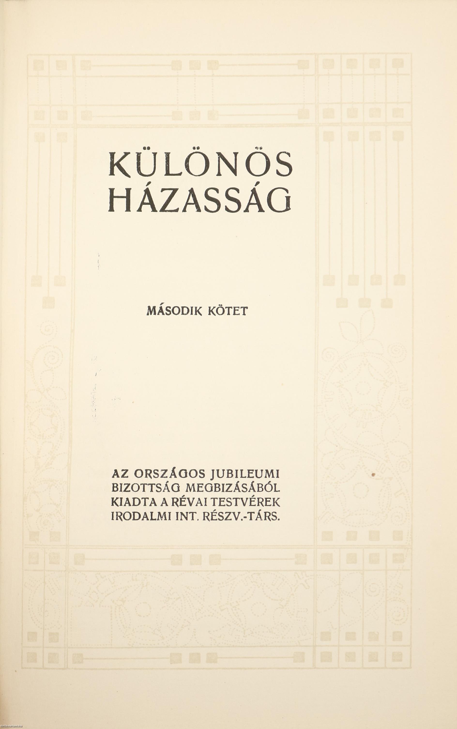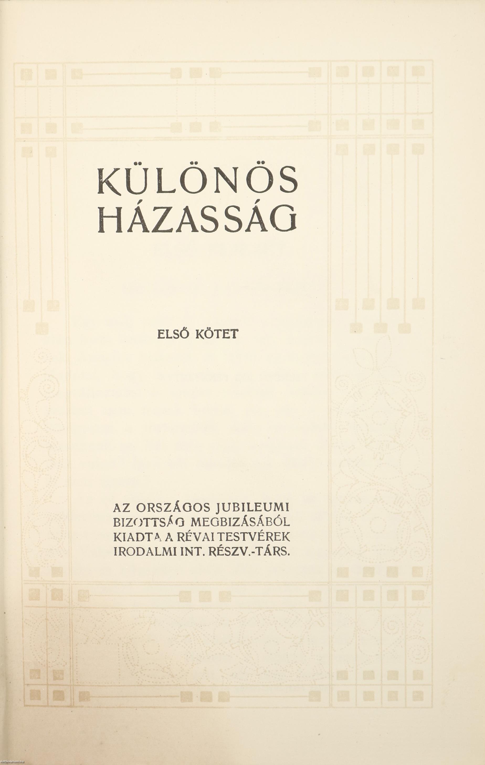 Különös házasság I-II. (Két kötet egy könyvben.) Írta: Mikszáth Kálmán.