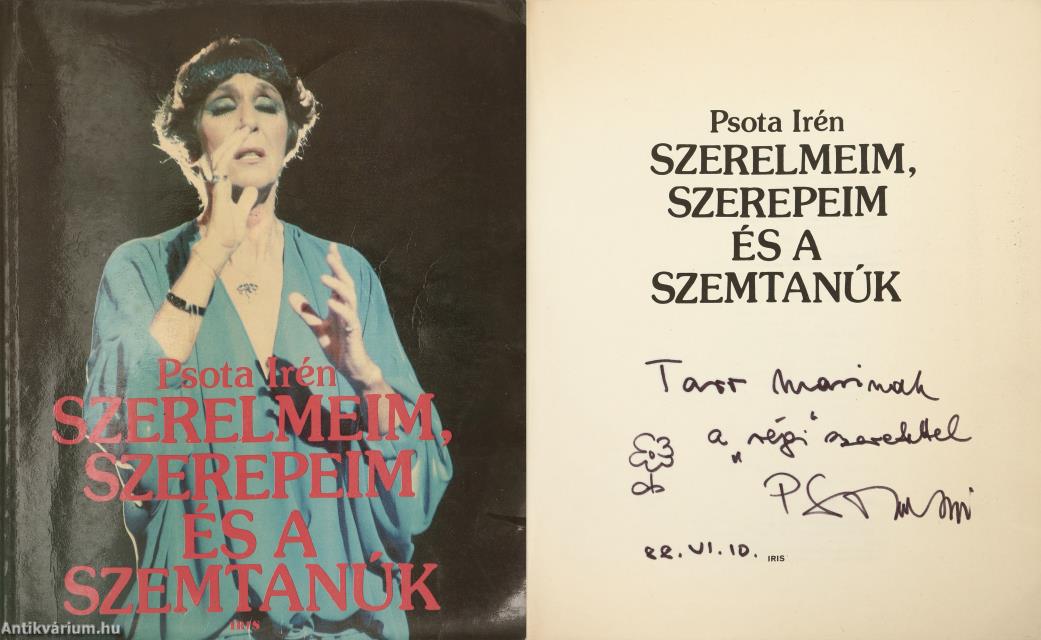 Szerző által dedikált példány. Első kiadás. Szerelmeim, szerepeim és a szemtanúk. Írta: Psota Irén.