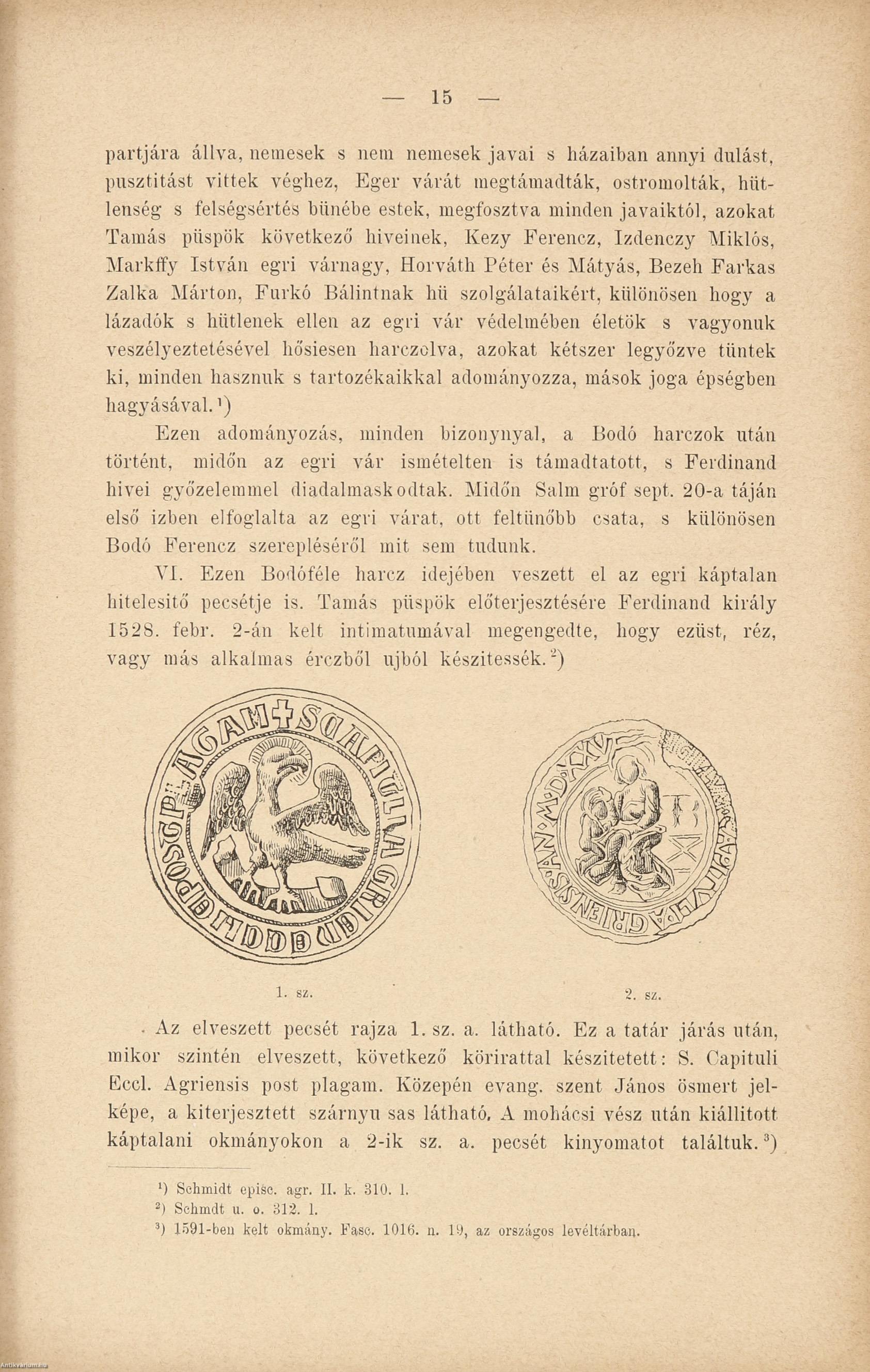 II. kötet: A mohácsi vésztől Egervára elestéig 1526-1596. Írta: Szederkényi Nándor, Egerváros országgyűlési képviselője. Néhány szövegközti, fekete-fehér képpel és egy kihajtható hasonmással illusztrált, valamint szerzői előszóval, részletes tartalomjegyzékkel, a sajtóhibák jegyzékével, illetve név- és tárgymutatóval kiegészített kötet. Eger, 1890, XVI p. + 504 p., ill. + 1 mell. (hasonmás)