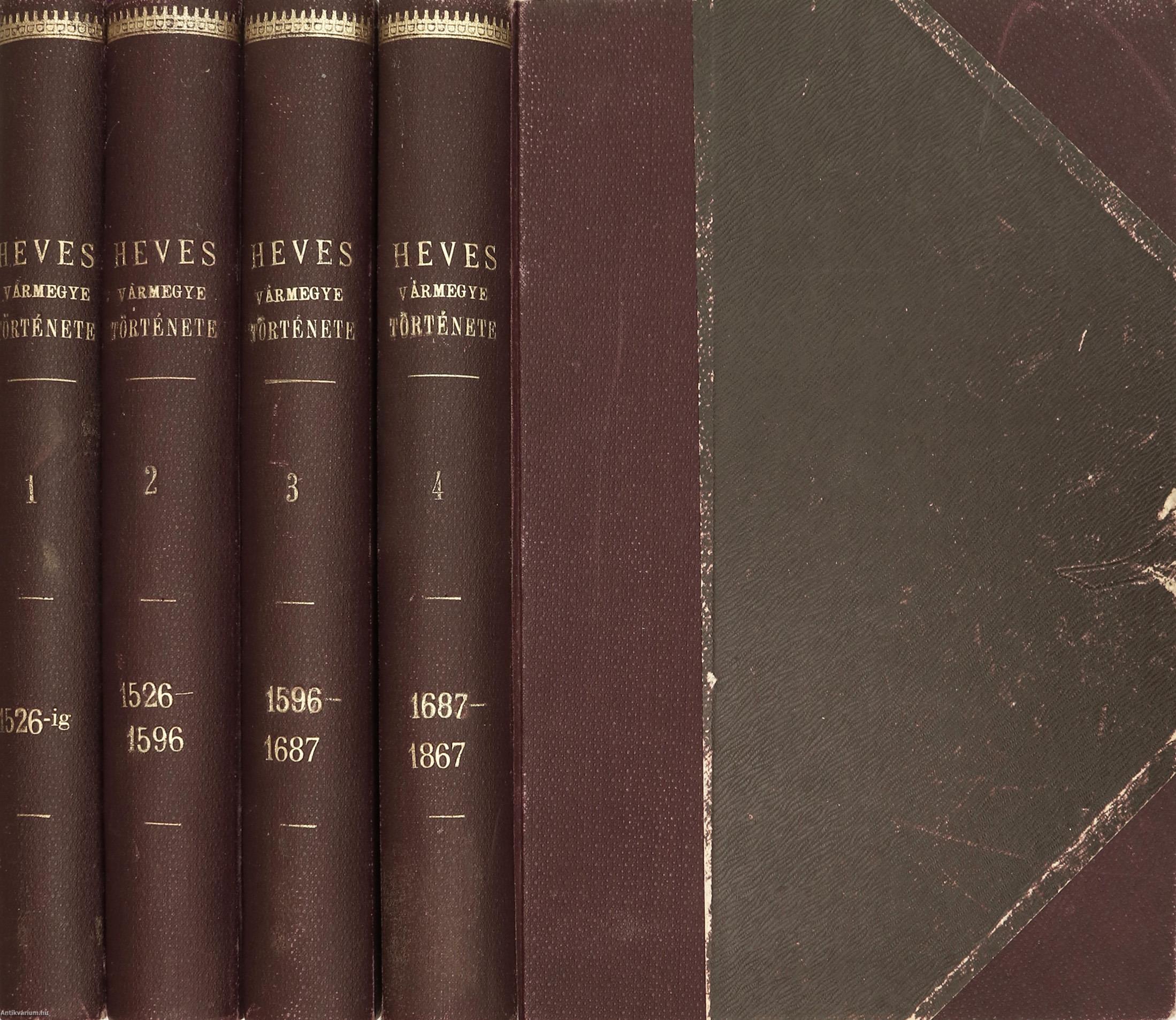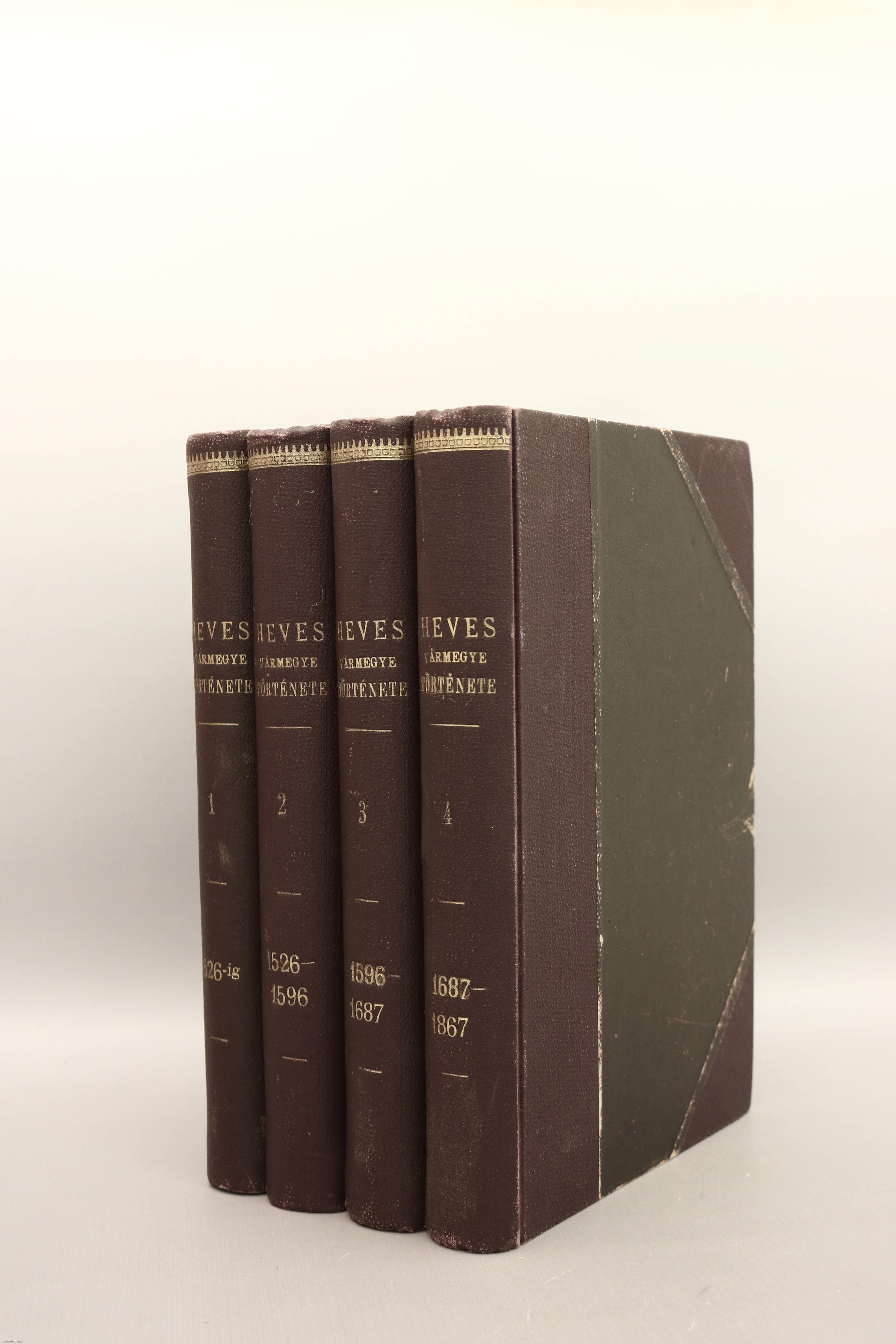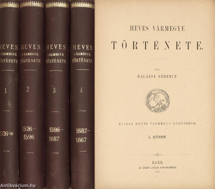 Első kiadás. Heves Vármegye Története. I-IV. (egységes külön kötetekben). Írta: Balázsy Ferencz és Szederkényi Nándor.