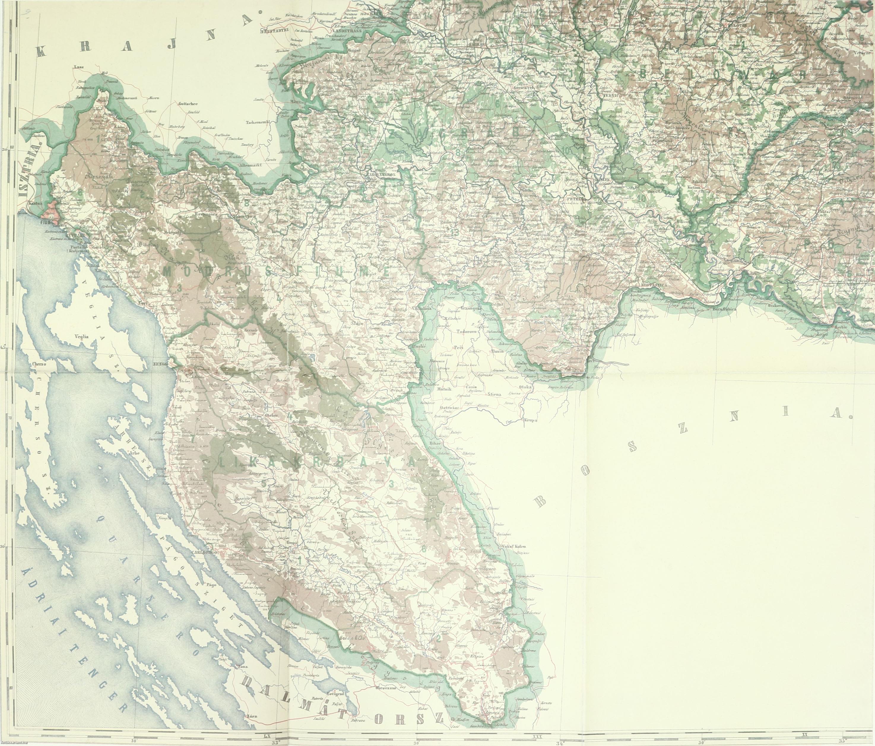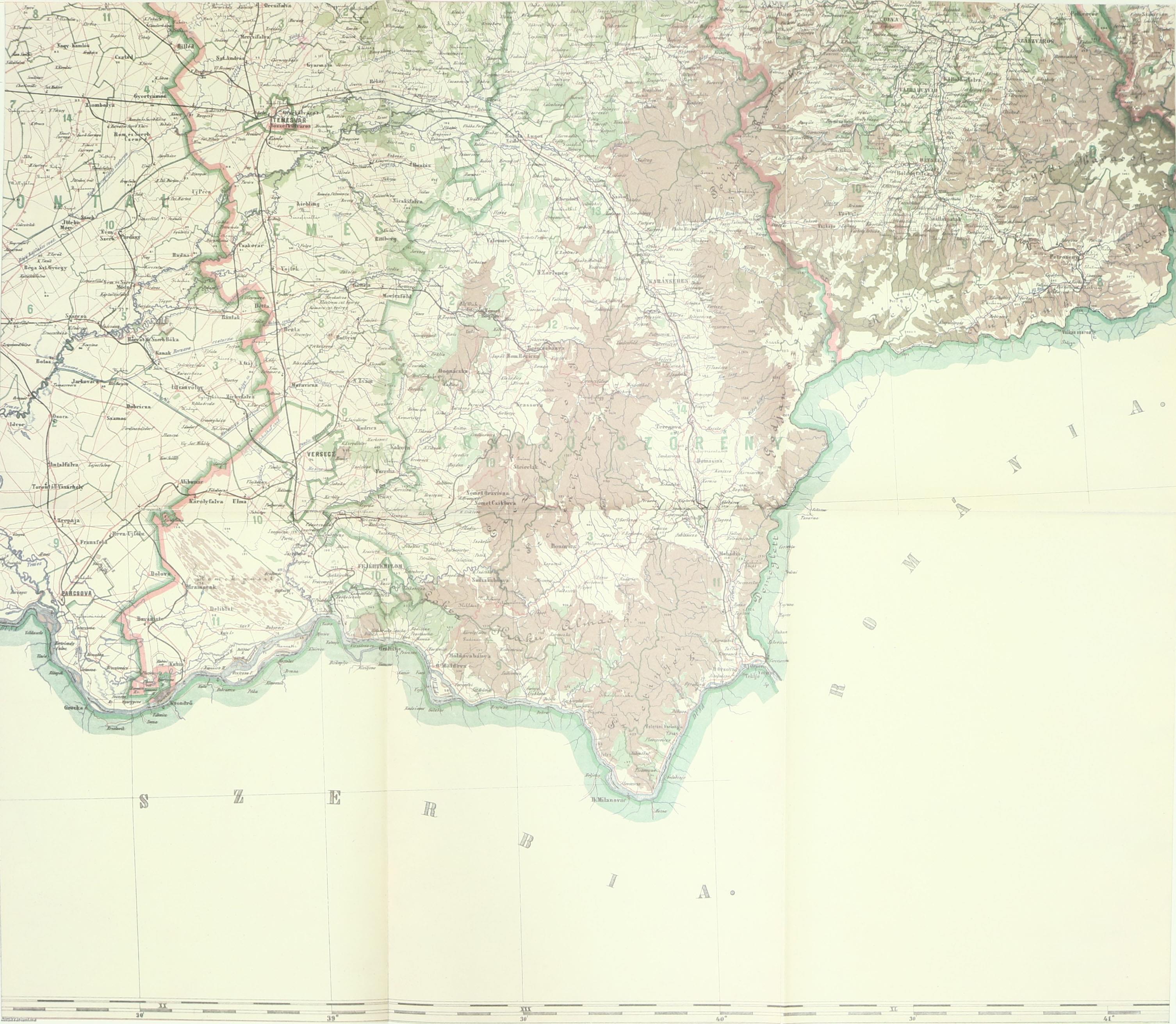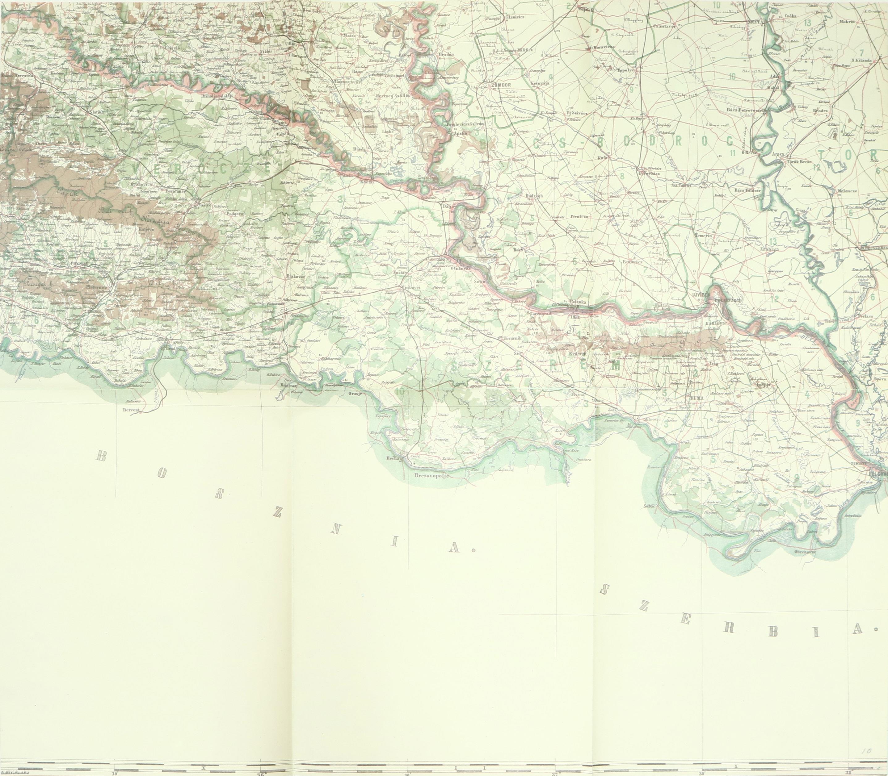 Keretes, hajtogatott, 12 térképlapból álló, hiánytalan térkép, üres, jelzet és feljegyzés nélküli hátlappal, feliratozott, illusztrált, javított, kiadói papírmappában.