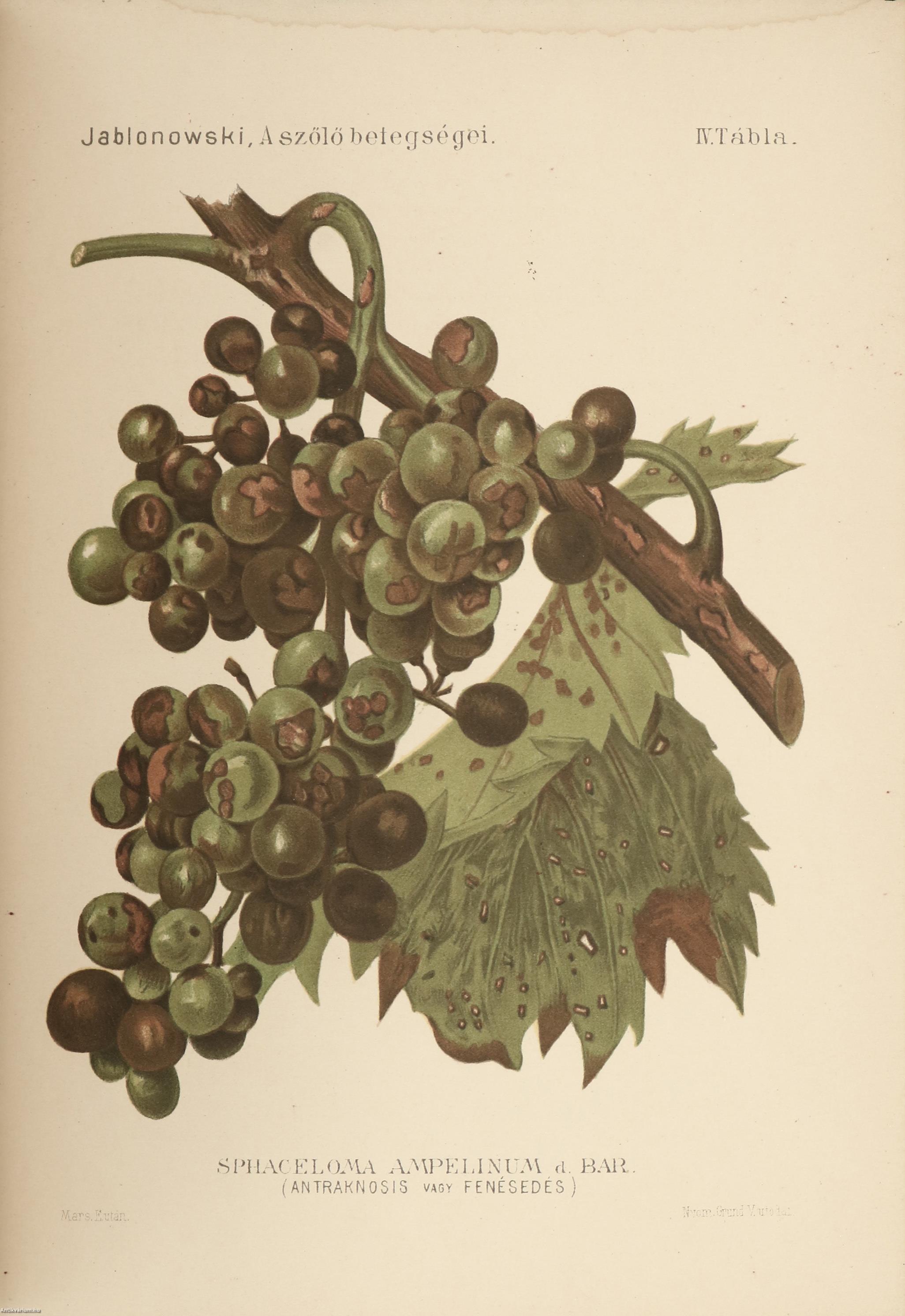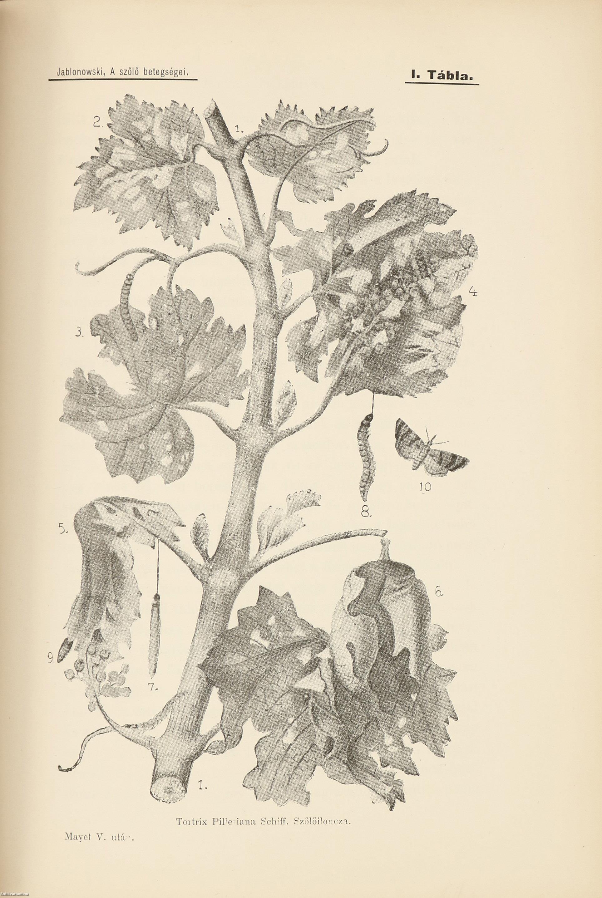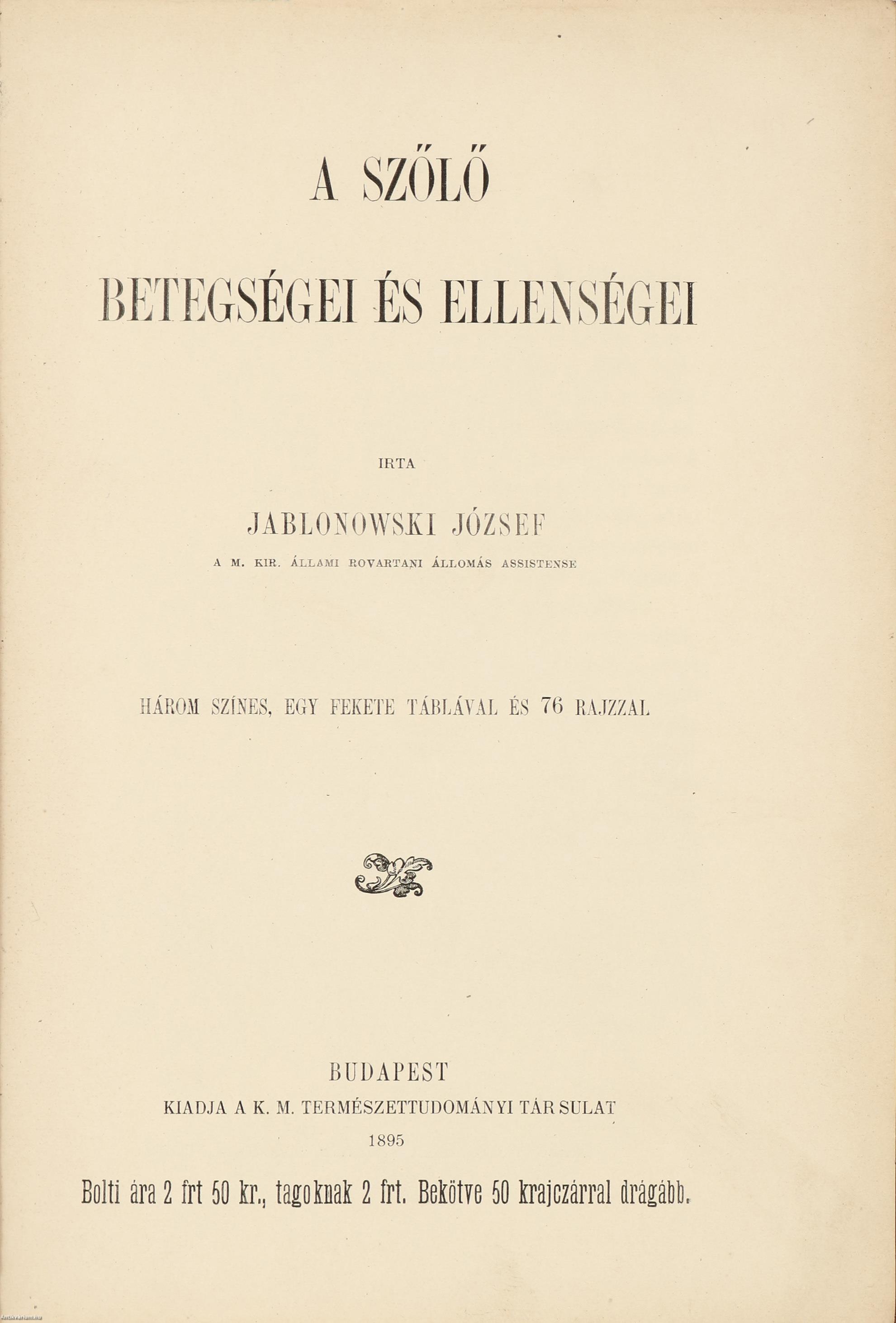 Első kiadás. A szőlő betegségei és ellenségei. Írta: Jablonowski József a M. Kir. Állami Rovartani Állomás assistense.