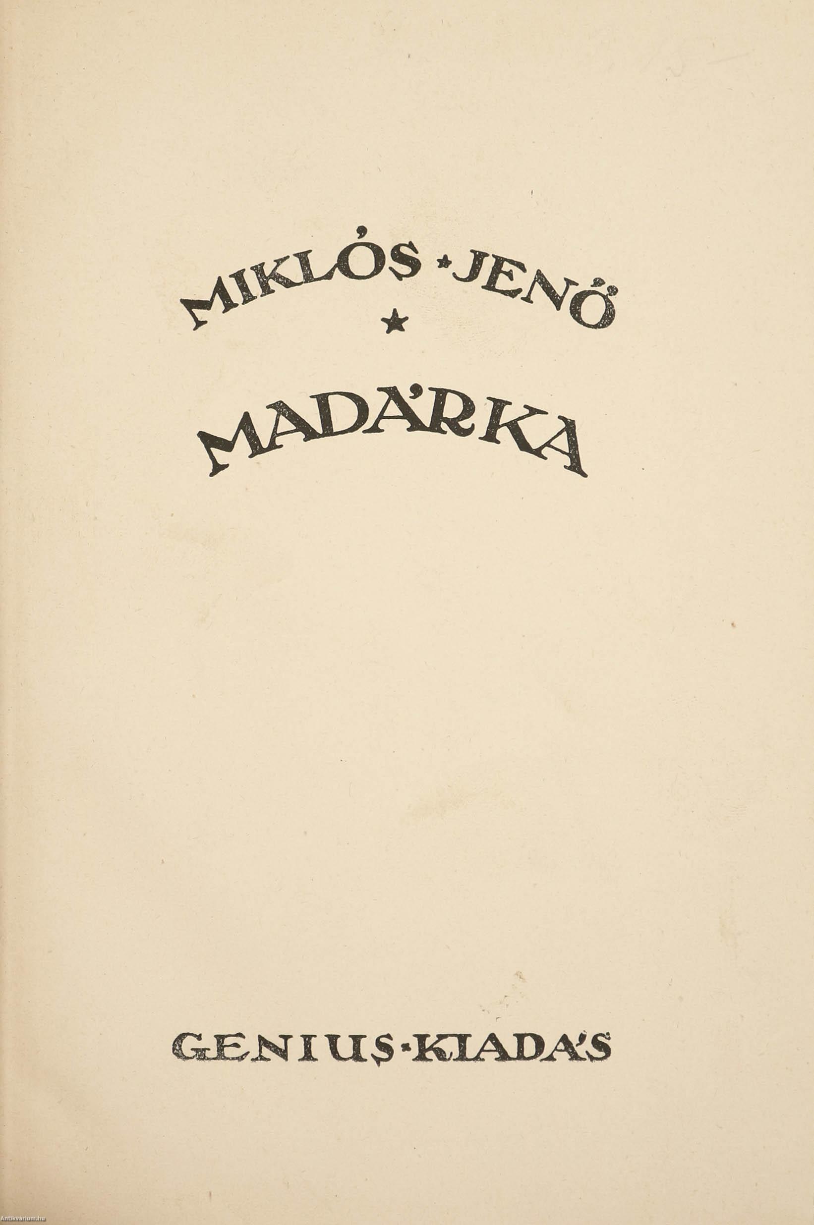 Madárka. Írta: Miklós Jenő.