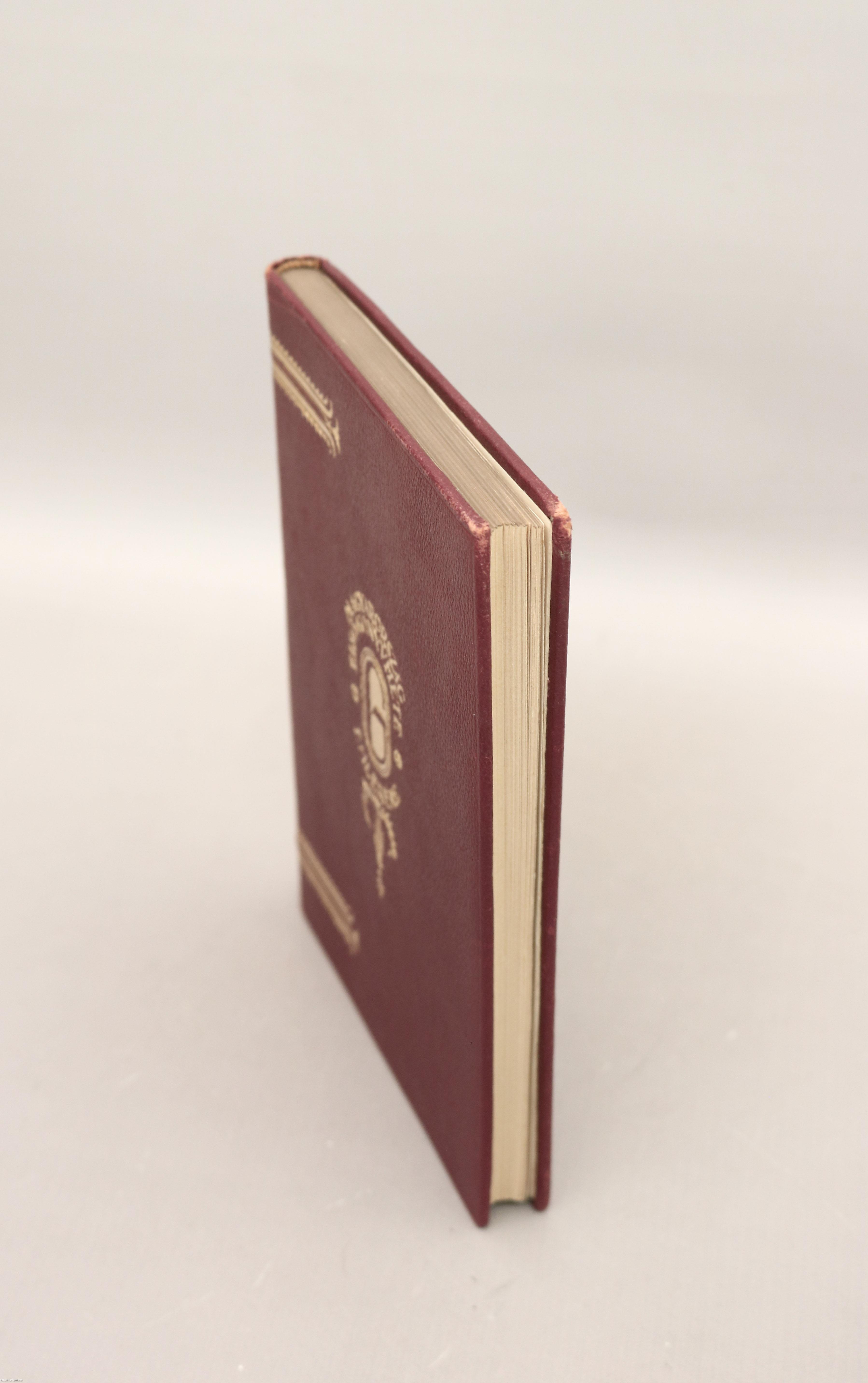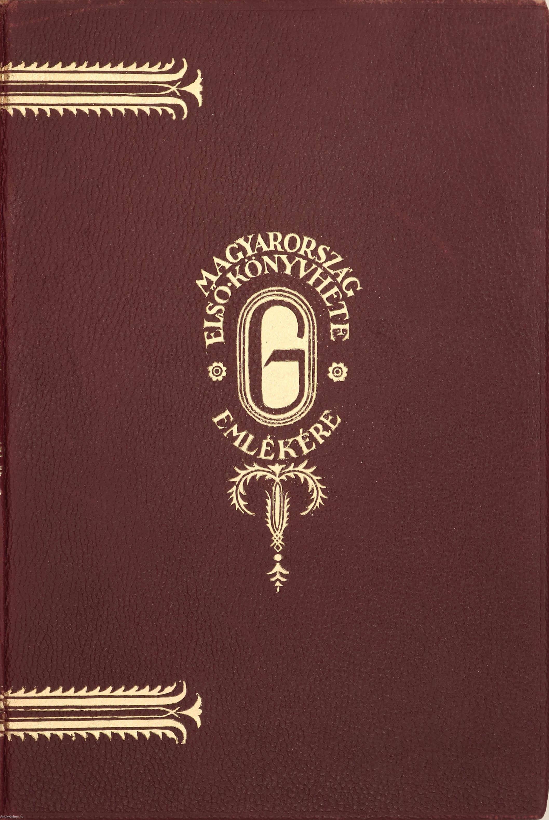 Kiadói aranyozott egészbőr díszkötésben lévő példány aranyozott feliratos, aranyozott kiadói emblémával díszített címfedéllel, aranyozott feliratos, aranyozással gazdagon díszített könyvgerinccel, aranyozott mintával díszített hátlappal, felül színezett lapélekkel, tiszta belívekkel, hiánytalan, jó állapotban.