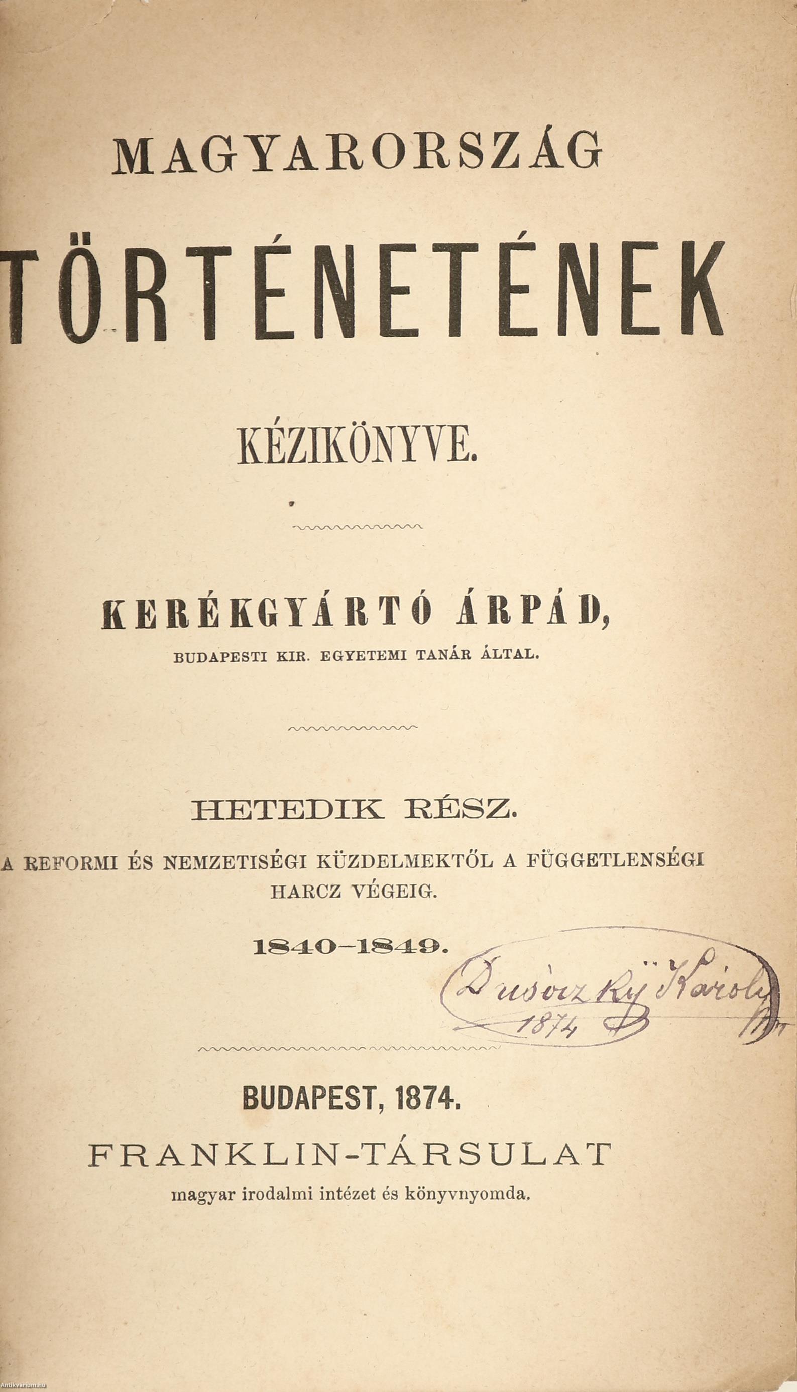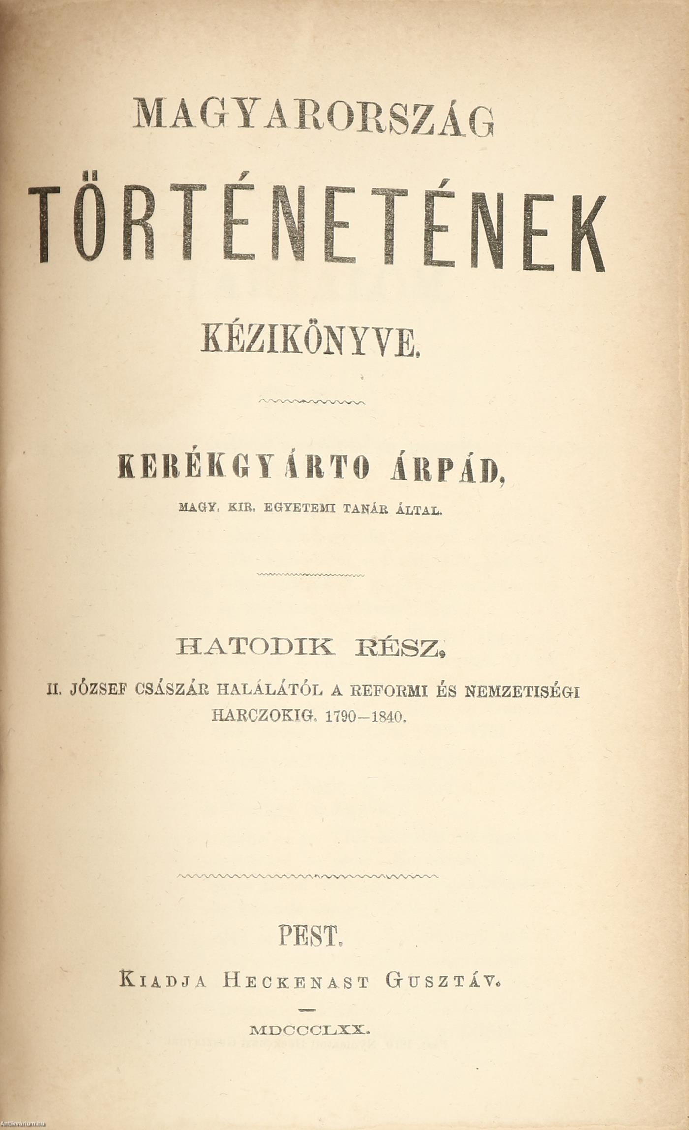 A nemzeti haladási vágya s ennek akadályai. A birodalom ujjá szervezése mellőztetik. A stabilismus elve a czélpont. Az osztrák rendőrfőnök befolyása Magyarországra. A vármegyék ellen használt kényuralmi eszközök. Szabadsági külmozgalmak osztrák haderővel nyomatnak el. Intézkedések az anyagi érdekek és a vallásosság körül. Metternich hiu mentsége a hátramaradás iránt. Az ország hangulata. 1815-1822 158