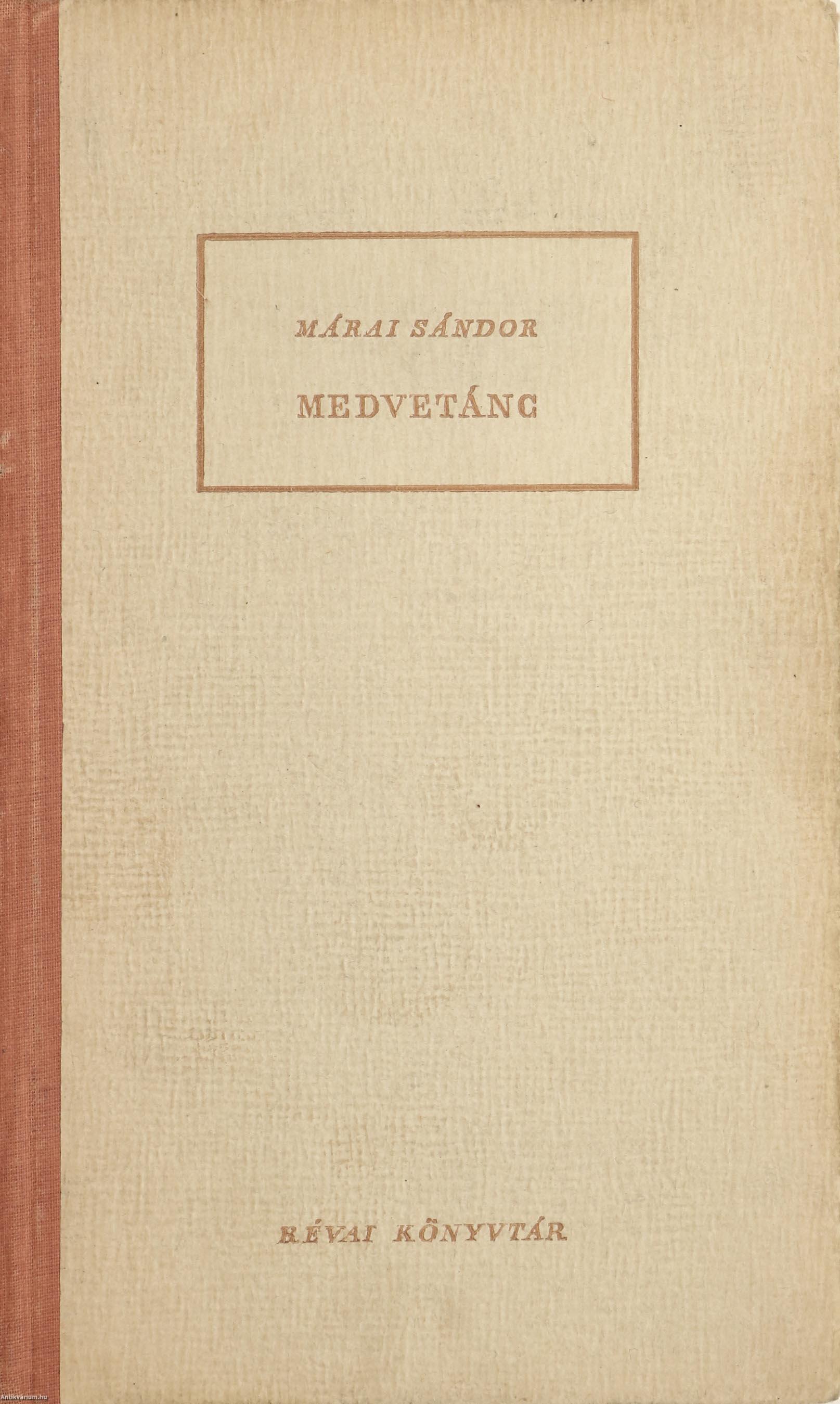 Szerző által dedikált példány.Első kiadás.Révai Könyvtár, 1. sz. Medvetánc. Írta: Márai Sándor.