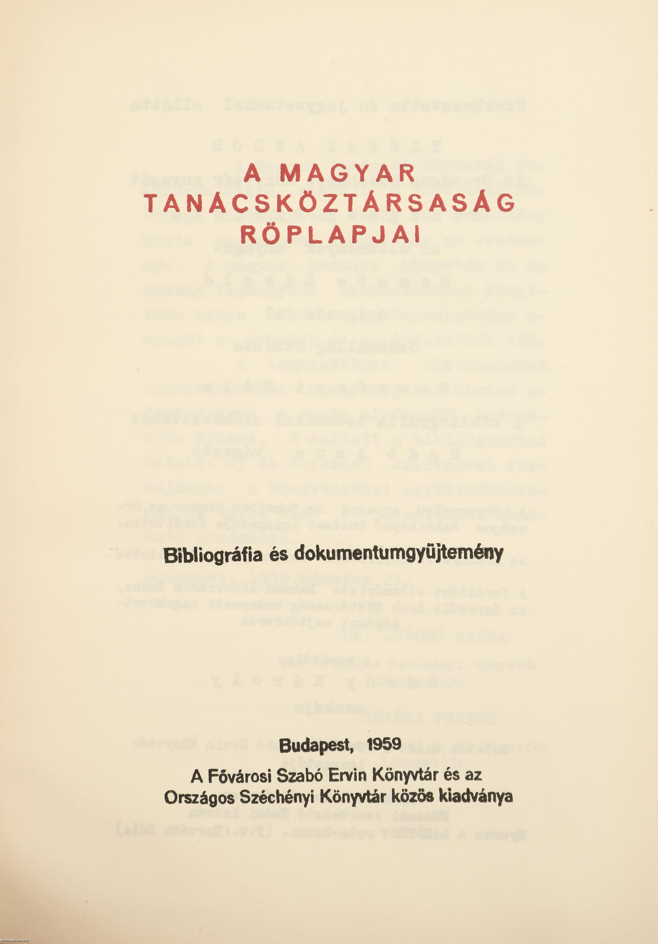 Bibliográfiánkban a Tanácsköztársaság idején megjelent röplapokat és aprónyomtatványokat dolgoztuk fel a Párttörténeti Intézet, az Országos Széchényi Könyvtár, az Országgyülési Könyvtár és a...