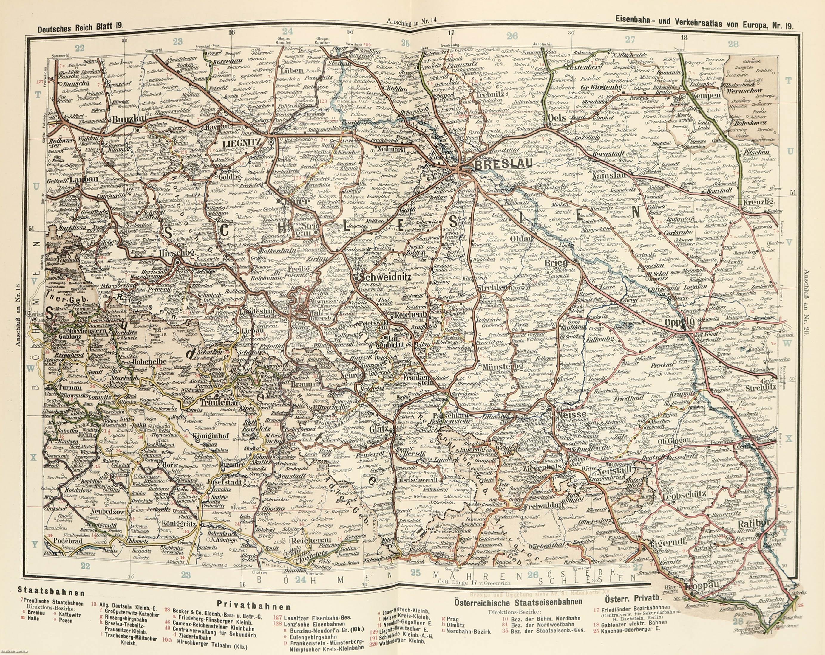 1. Eisenbahn- und Verkehrs-Atlas von Mittel-Europa. (Deutsches Reich - Luxemburg - Österreich-Ungarn - Schweiz). Bearbeitet und herausgegeben von C[arl Albert] Opitz. /