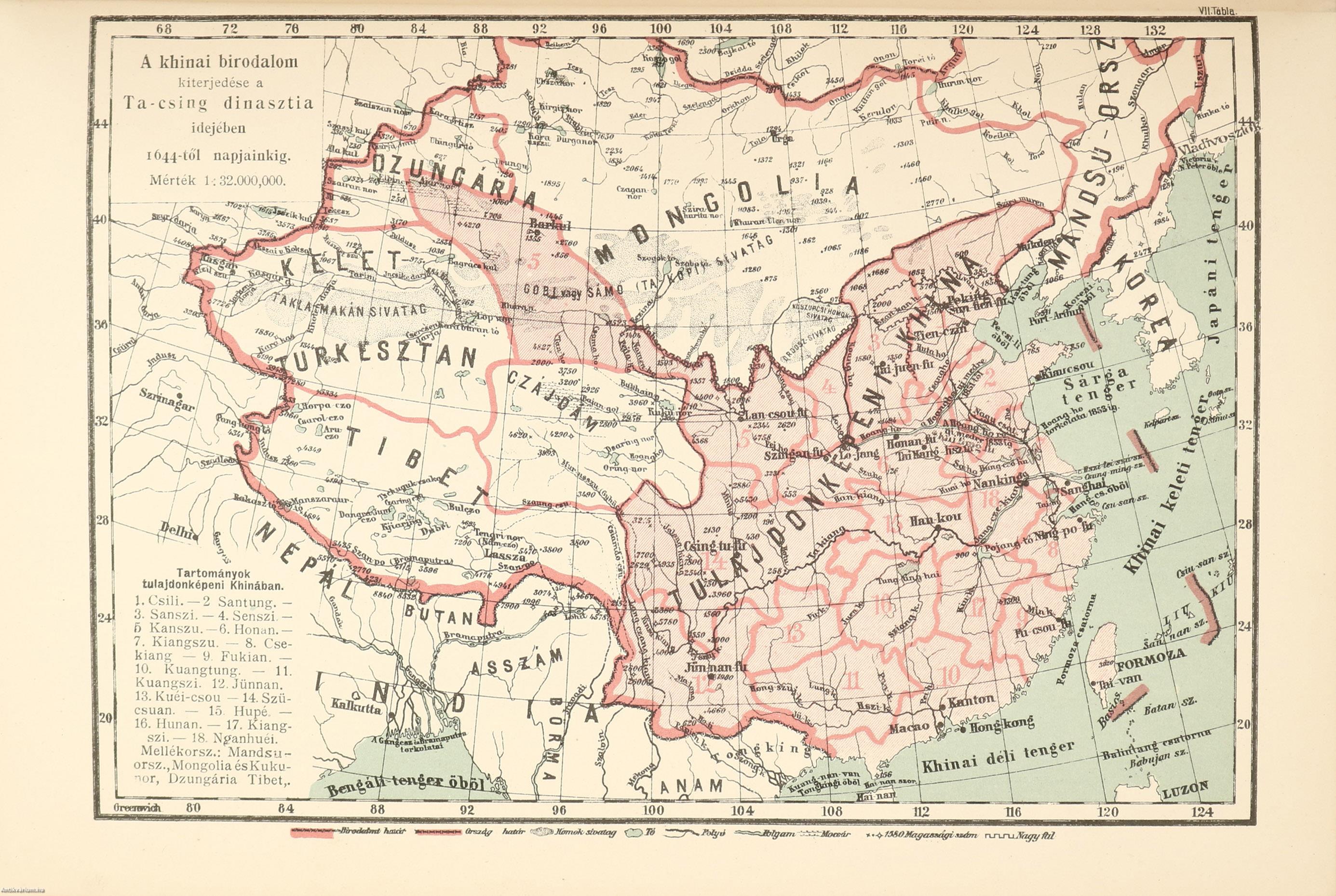 VII. tábla. A khinai birodalom kiterjedése a Ta-Csing- (vagy Mandzsu)
